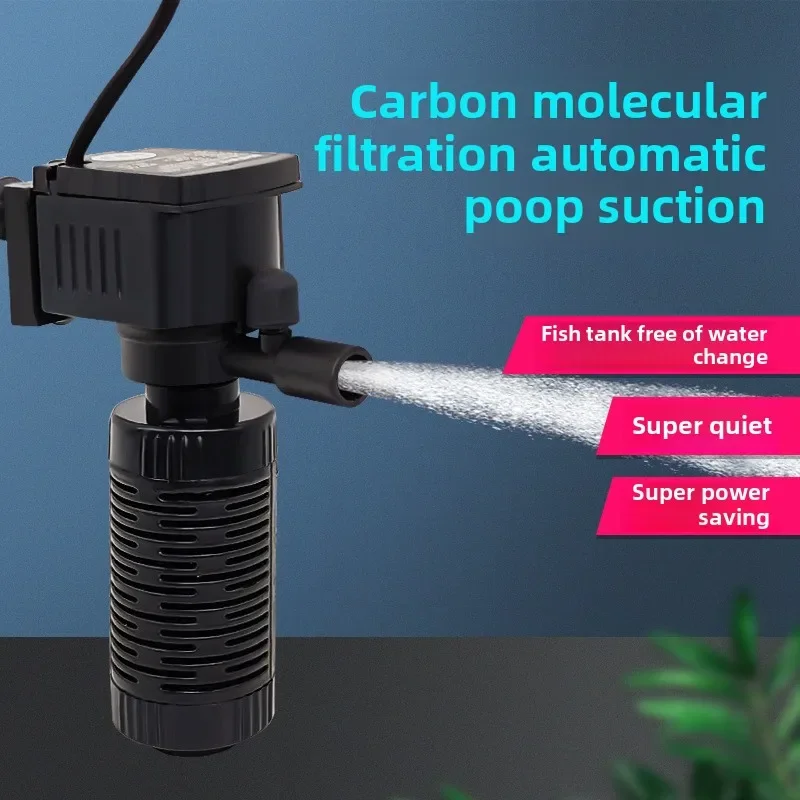The multi-layer biochemical filtration submersible pump sends oxygen to the aquarium from under the water through the intake pipe, and the continuous water flow allows the oxygen to diffuse with the water flow to the aquarium, while bringing carbon dioxide into the air. The otherworldly design concept is matched with filter cotton, even the most subtle dirt is not spared; the strong rubber suction cup is easy to install on the aquarium wall.