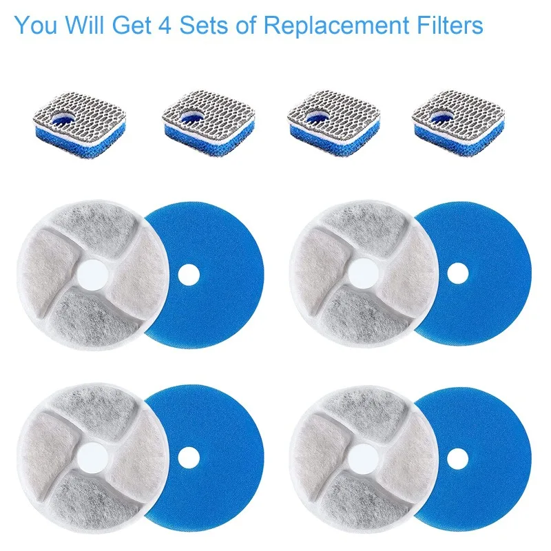 Combinación perfecta: puede obtener 4 filtros de repuesto redondos + 4 Filtros de espuma de esponja redondos + 4 filtros de esponja cuadrados, el filtro de agua redondo para gatos tiene 4,13 pulgadas de diámetro y se adapta a la mayoría de las fuentes para gatos. Filtra perfectamente el polvo, el cabello y la mayoría de los metales pesados al tiempo que elimina los olores y mantiene el agua limpia.