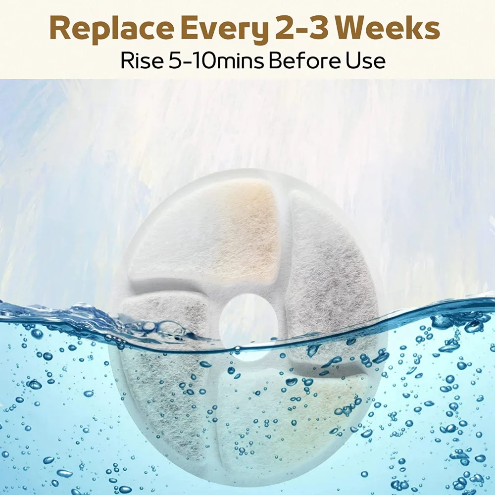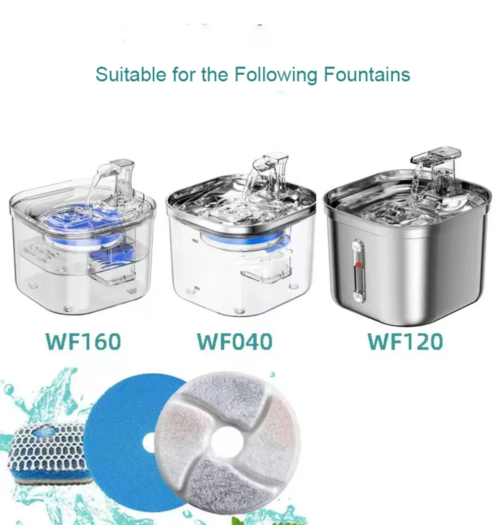En mi caso lo compré para una fuente de la casa PUPPY KITTY de 2L. Es el filtro que he encontrado que mejor se adapta. Es importante renovarlo antes de instalarlo para eliminar cualquier resto que quede de la fabricación. Para mí fuente solo necesitaría el filtro de tela pero se puede poner también el azul y así quedan los pelos en el primero y el de carbón y resinas dura más. En las fotos puede verse el original y el recambio.