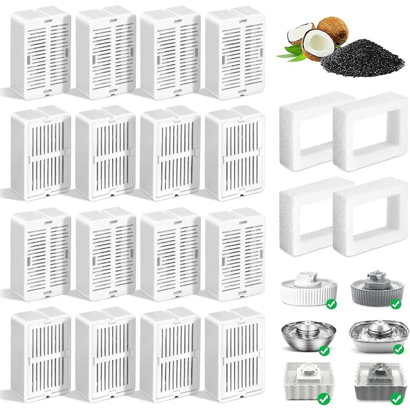 😺【Compatibilidad】 Paquete de 16 filtros de repuesto para fuente de gato y 4 esponjas de bomba compatibles con fuente de cerámica para mascotas CupCake de 360 ° y fuente para mascotas de acero inoxidable de 360 °; proporcionamos reemplazo de 12 meses y servicio al cliente las 24 horas, contáctenos en cualquier momento.