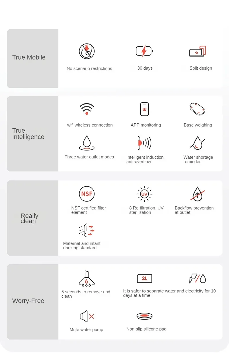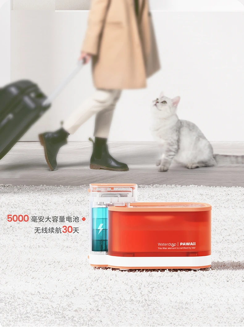 ★Duración de la batería inalámbrica 30 días de agua potable para mascotas en casa sin preocupaciones