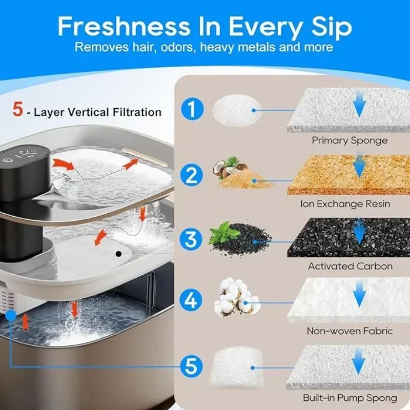 Filtros y esponjas de repuesto para fuente de agua para mascotas, dispensador de agua potable para gatos de acero inoxidable, 4L, paquete de 8
