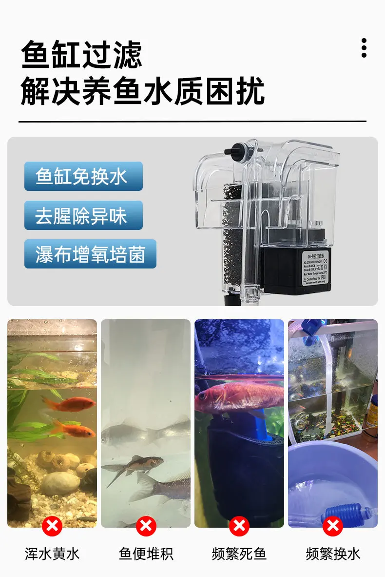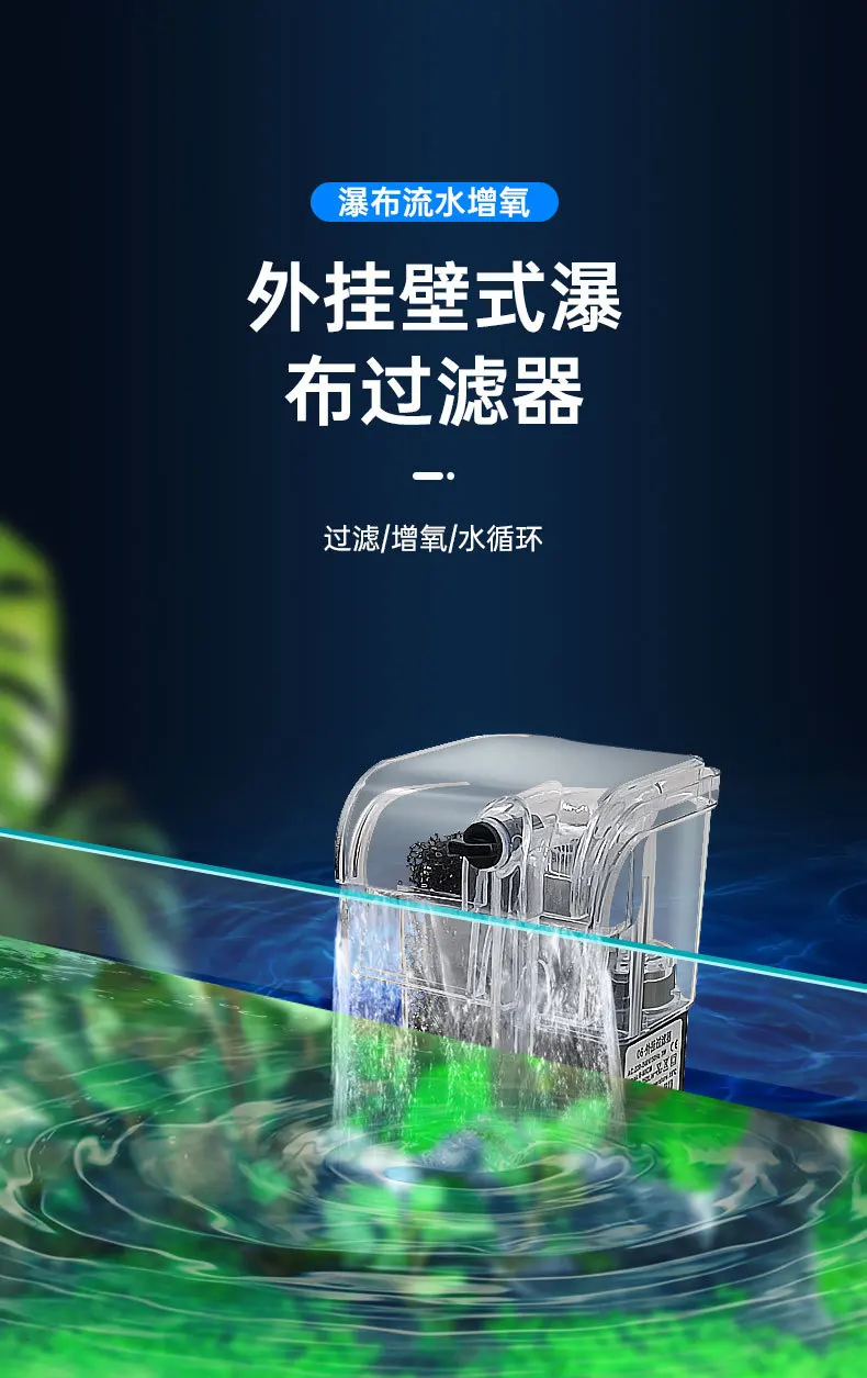 Fish Tank Filter Waterfall Filter Cleaning Oxygen Pump Aquarium Wall Mounted Silent External Hanging