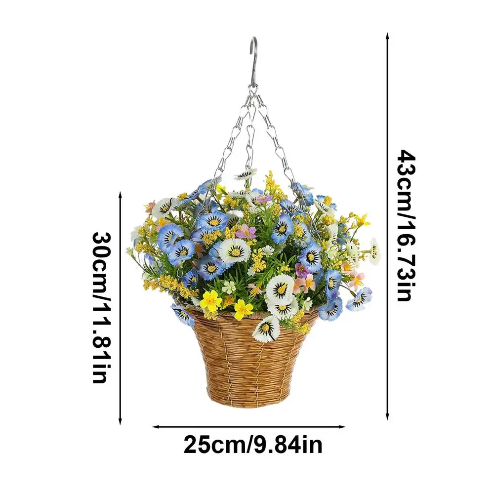 Añade un poco de encanto a la decoración de tu hogar con nuestras cestas de flores artificiales de alta calidad.Fabricados con excelentes materiales, no necesitan riego ni reemplazo.Además, no ocupan espacio en el suelo.Perfecto para cualquier espacio habitable o decoración de eventos.