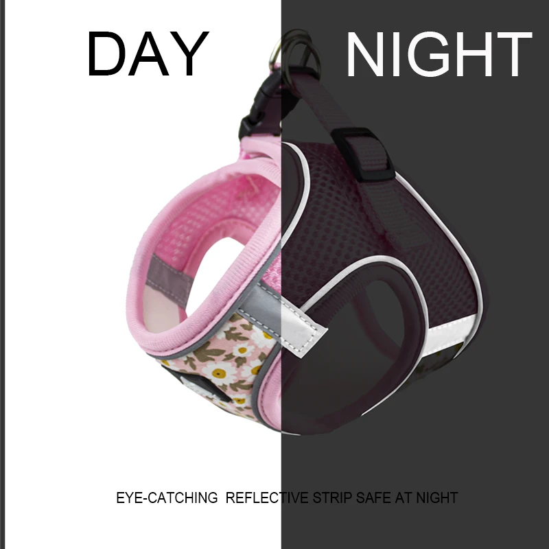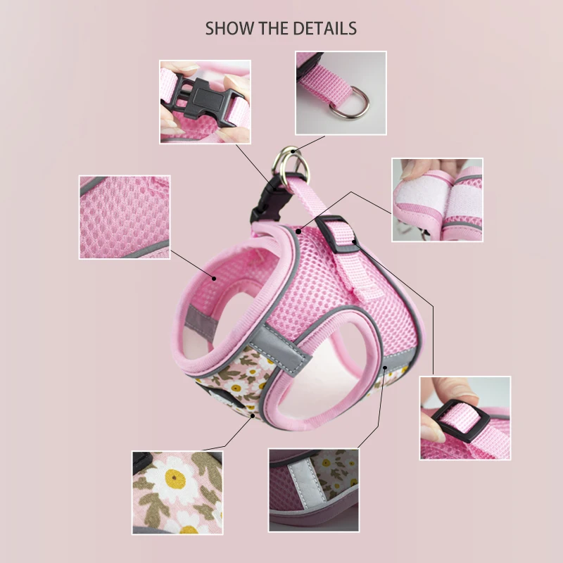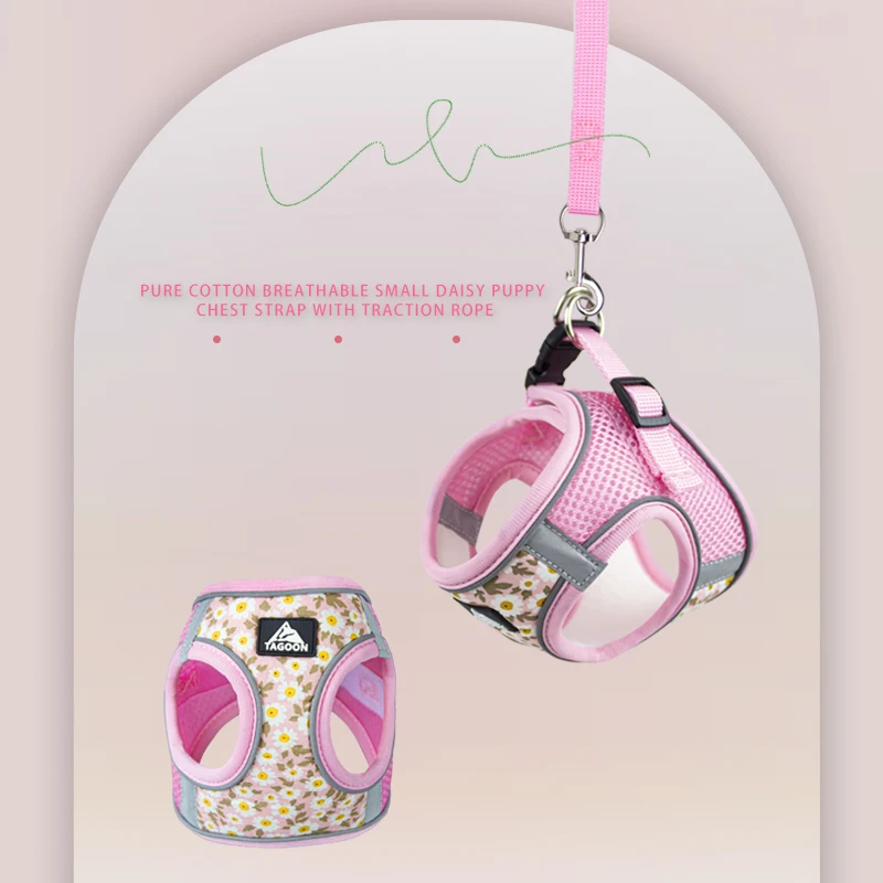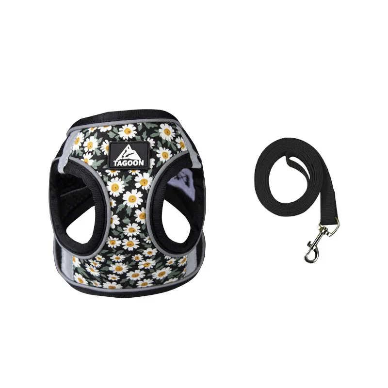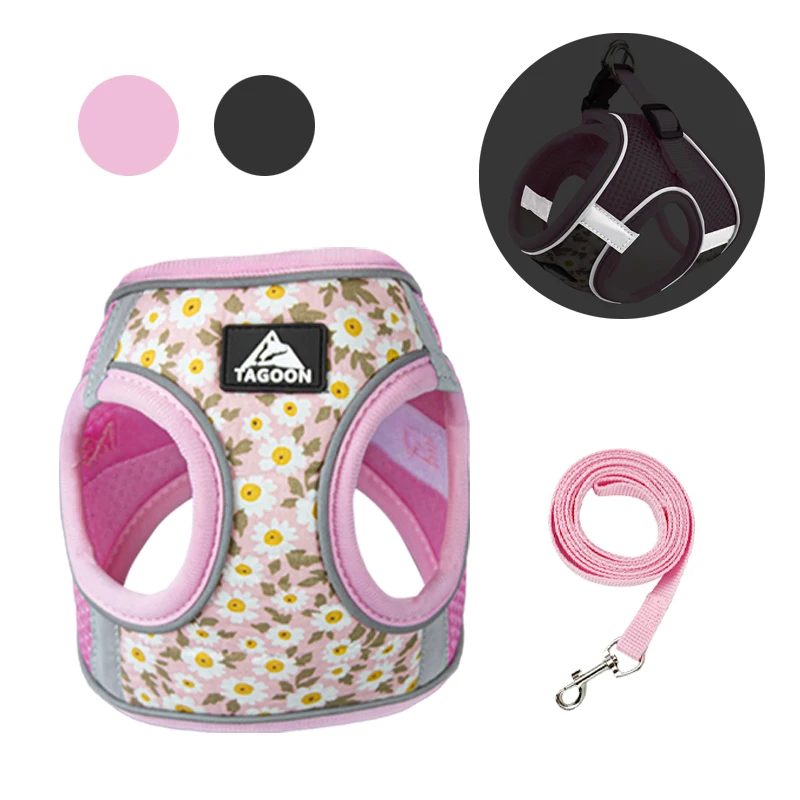 Floral Pet Harness and Leash Set For Small Dogs Reflective Vest Harness for Chihuahua Small Medium Pets Chest Strap Dog Walking