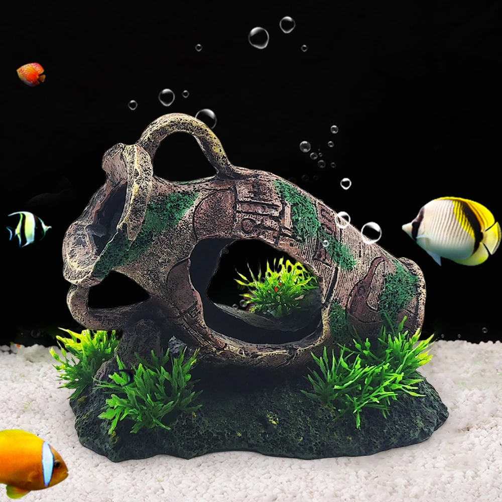 Florero antiguo Retro con forma de resina, adornos para pecera, adorno de paisaje para acuario, decoraciones para acuario, artesanía para el hogar, estatua para pecera