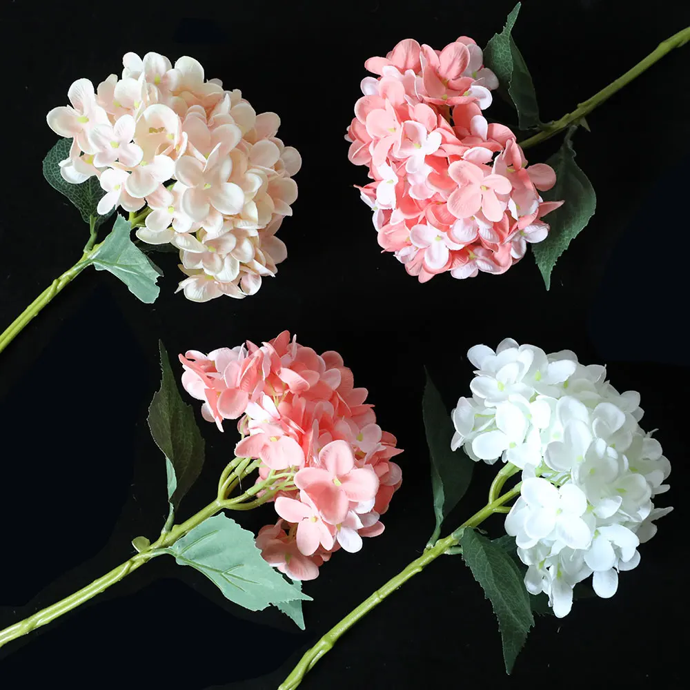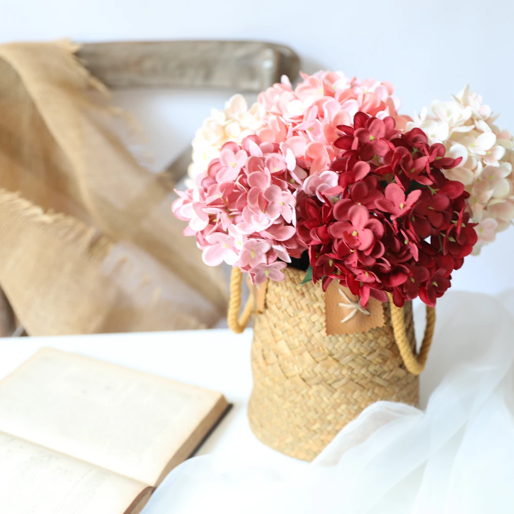 Flores artificiales de hortensia para decoración del hogar, flores de plástico de seda de alta calidad, rama de hortensia, decoración de fiesta y habitación