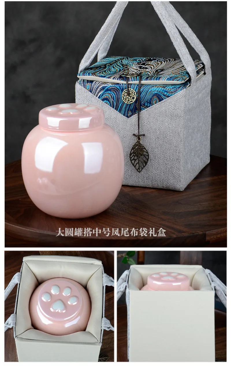 Frascos de cerámica para almacenamiento de cenizas de mascotas, tanque de almacenamiento sellado rosa a prueba de humedad, ataúd para mascotas, florero funerario, urna funeraria conmemorativa para perros y gatos