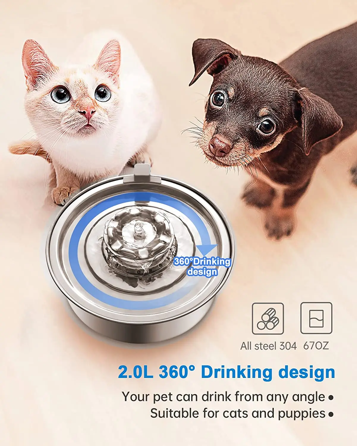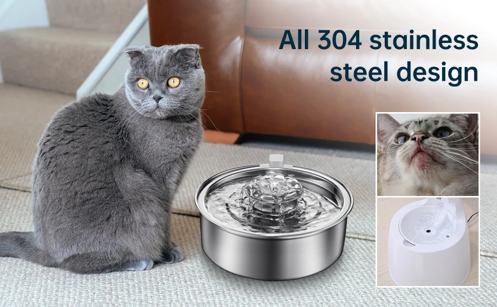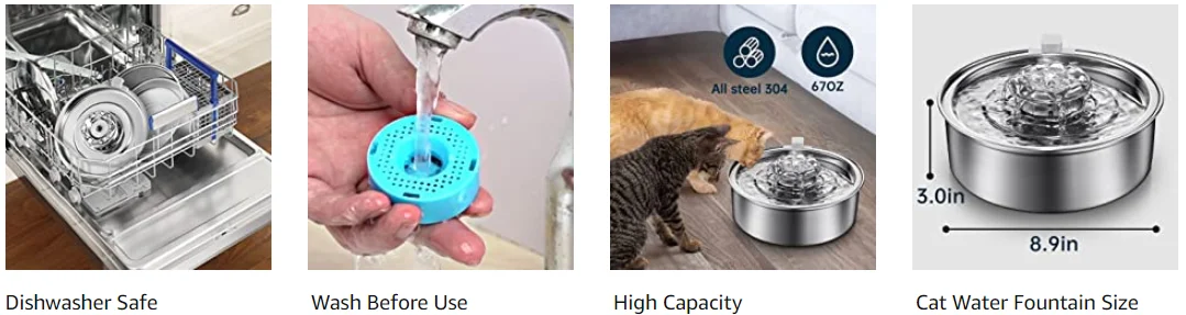 ◆[Materiales de alta calidad]La fuente para gatos está hecha de acero inoxidable 304, fuerte, duradera, fácil de usar y fácil de limpiar. La bandeja de acero inoxidable y el cubo de almacenamiento de agua son aptos para lavavajillas.