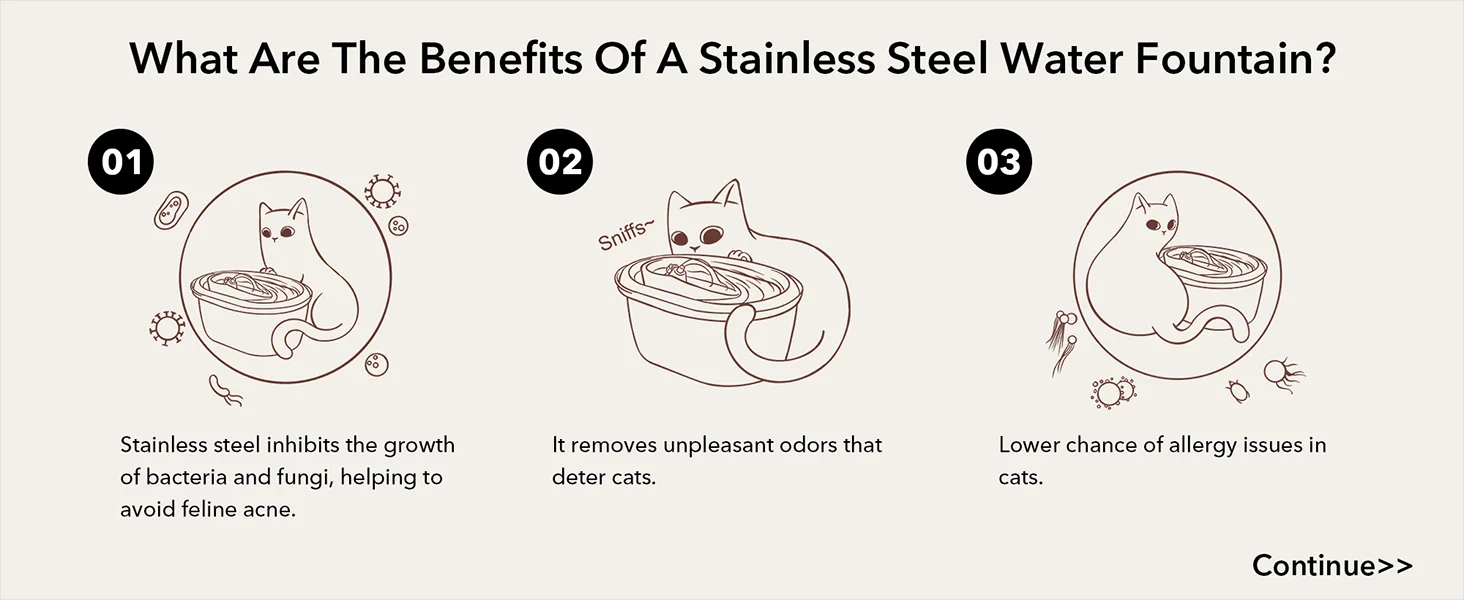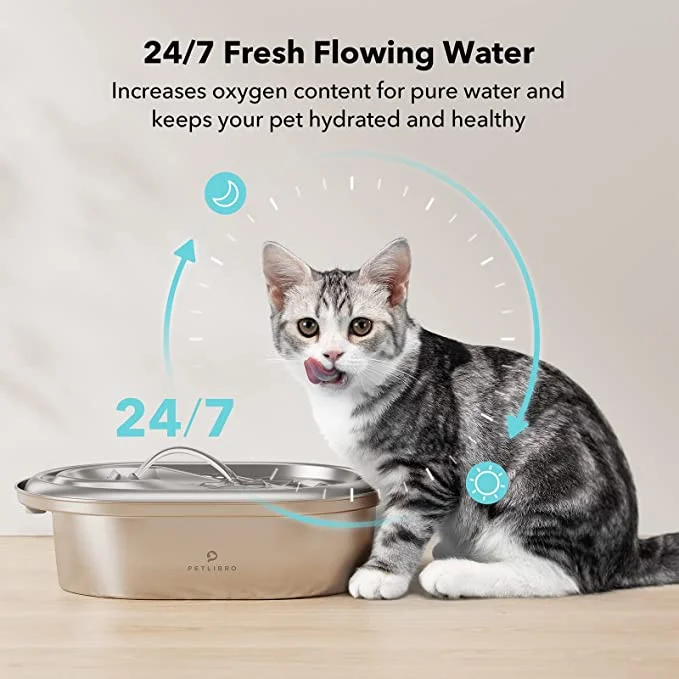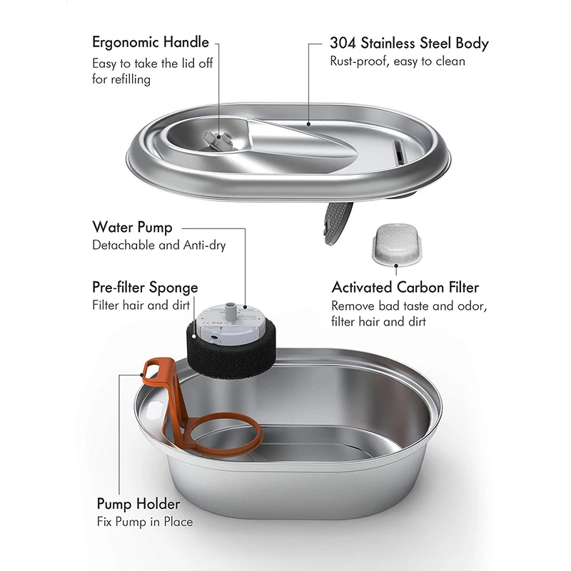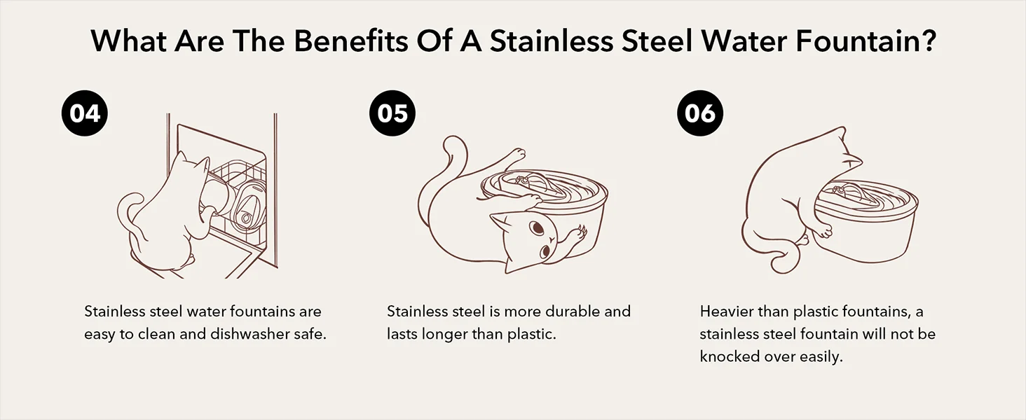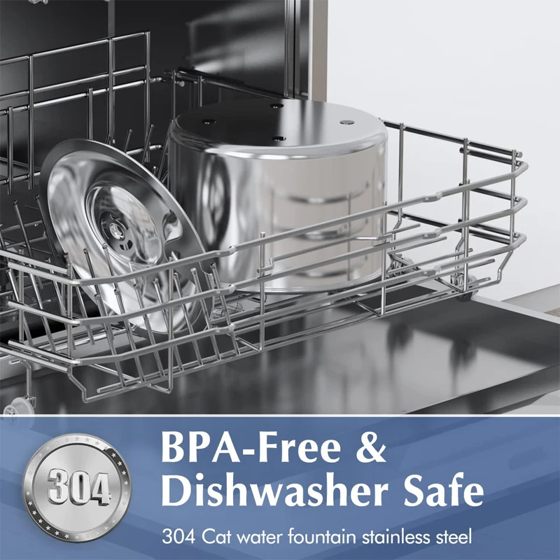 Fuente de agua para gatos de acero inoxidable, fuente saludable para mascotas, dispensador de agua para perros apto para lavavajillas, fuente de agua súper silenciosa