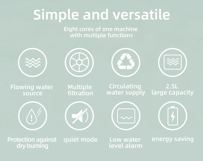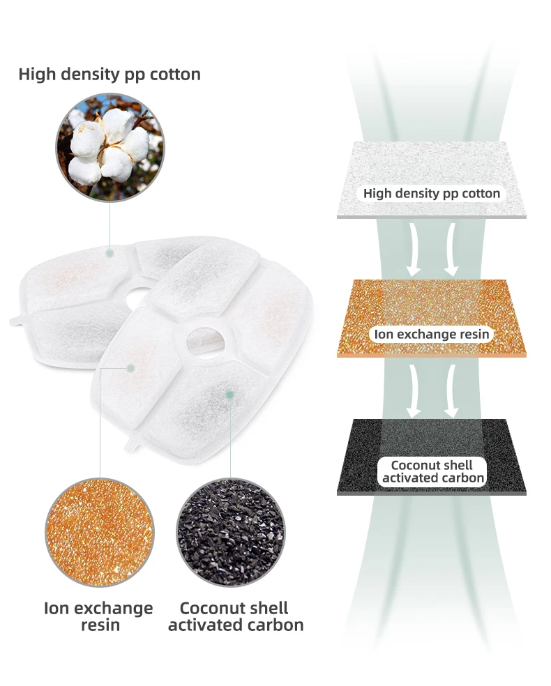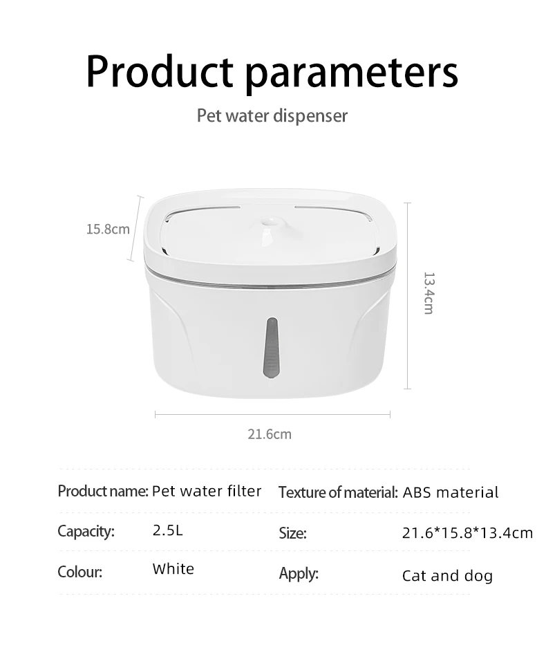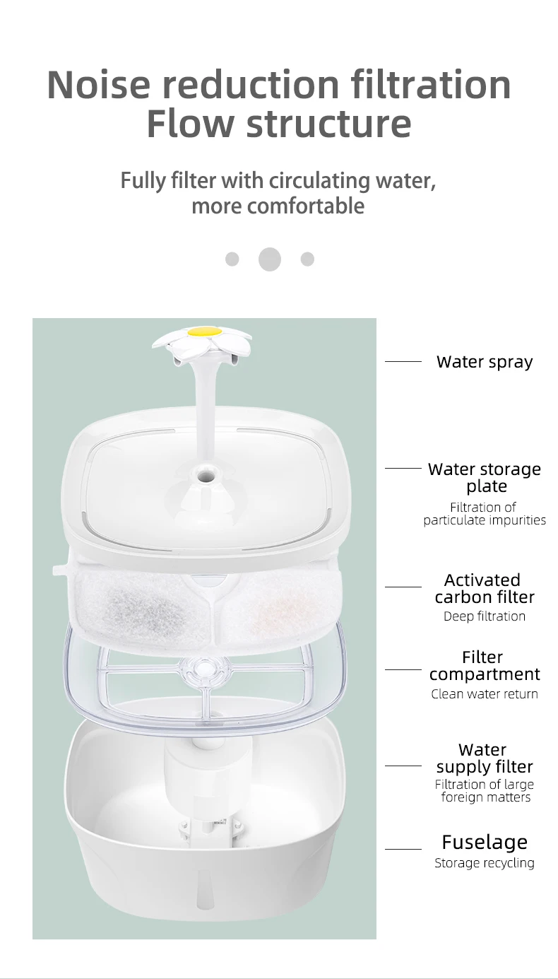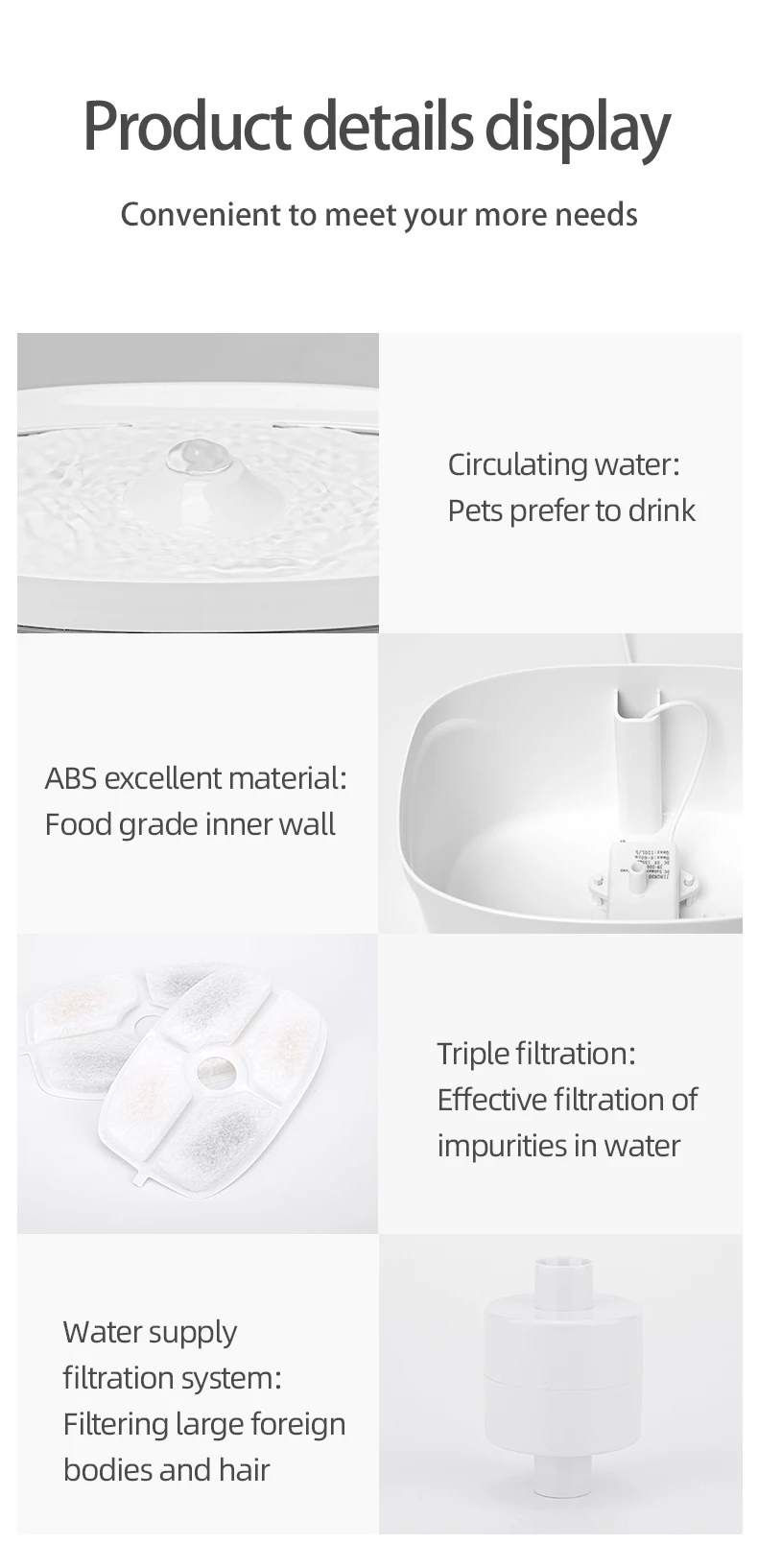 【El paquete incluye】: 1 × fuente de agua para mascotas, 3 × filtros, 1 × adaptador de EE. UU., 1 × manual de usuario. 【Fabricación premium】: la fuente para gatos está hecha de material ABS de alta calidad.Los materiales del filtro son carbón activado de cáscara de coco que puede filtrar eficazmente las impurezas. 【Silencioso y versátil】: el bebedero para gatos es súper silencioso y ofrece 2 modos de flujo de agua: cascada de flores y fuente suave: cada modo satisface las necesidades de diferentes mascotas. 【Capacidad de 2,5 L】: La fuente para gatos con una capacidad superlativa de 2,5 L, sin necesidad de rellenar agua con frecuencia. 【Nivel de agua visible】: Nuestra fuente de agua para gatos tiene luz LED y ventana de nivel de agua para permitirle ver el nivel de agua en cada momento. Azul para agua llena y rojo para vacío.
