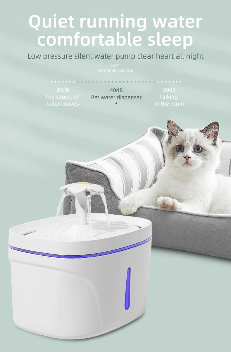 Fuente de agua automática para gatos de 2,5 L con iluminación LED, bebedero para perros, comedero para gatos, dispensador de agua para mascotas, bebedero automático