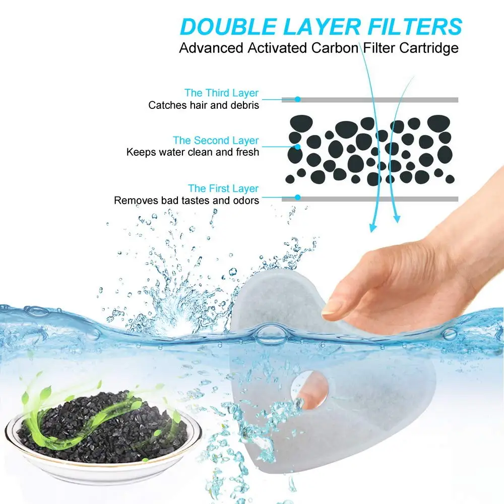 Por lo general, se reemplaza cada 2-4 semanas, dependiendo del número de mascotas que usen la fuente. Tener más mascotas que usen la fuente aumentará el contenido de saliva y los restos en el agua, el filtro deberá cambiarse con más frecuencia.