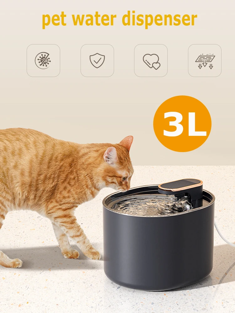 Fuente de agua automática para mascotas de 3L con luz LED, fuente de agua potable ultra silenciosa para mascotas, alimentador de agua eléctrico silencioso para gatos USB
