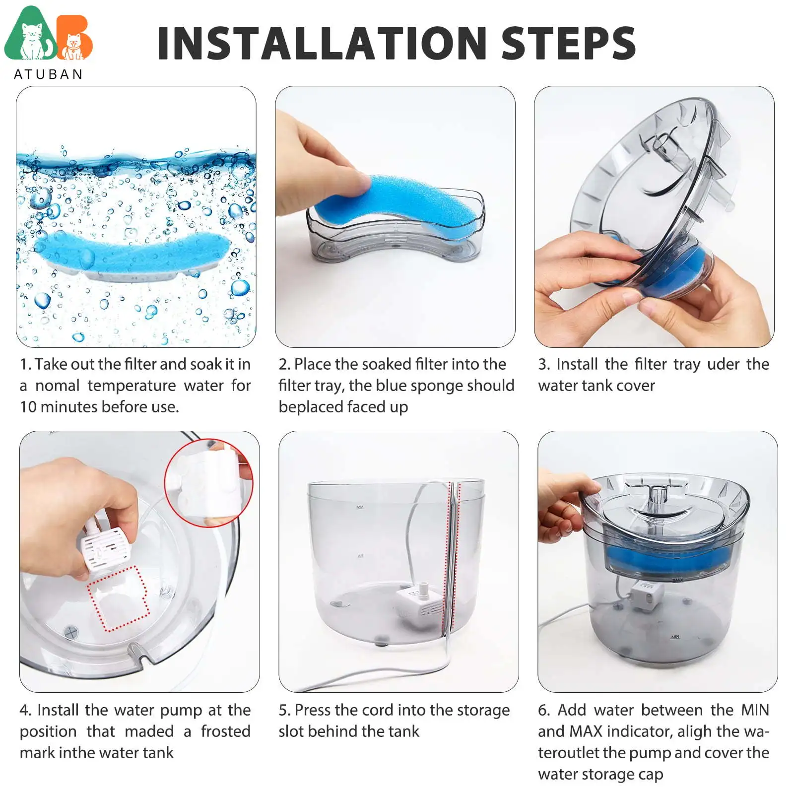 4. De acuerdo con la frecuencia de bebida de su mascota y el número de mascotas que usan la fuente, Reemplace el filtro y la Esponja cada 3 a 4 semanas.