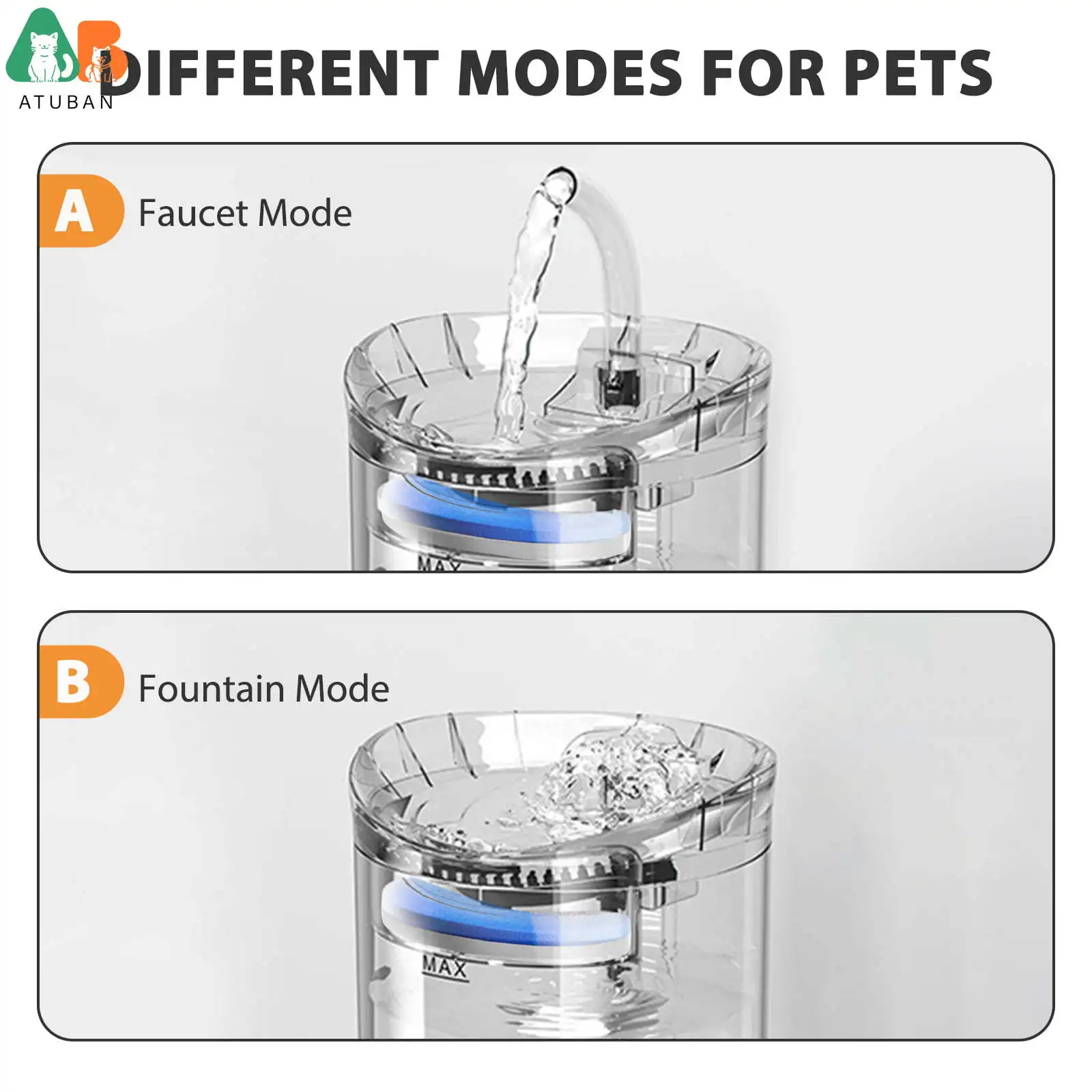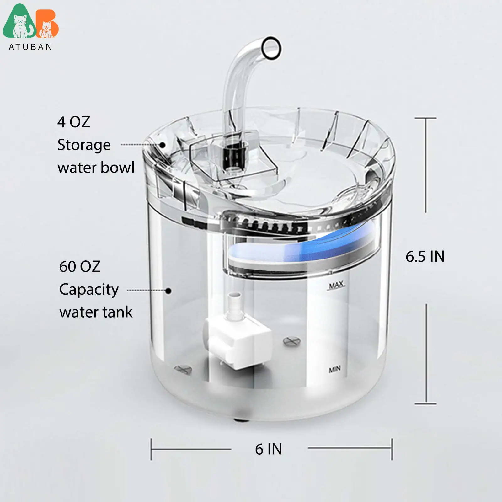 Fuente de agua para mascotas 61oz/1.8L Ultra silencioso automático gato dispensador de agua con filtro para gato perro múltiples mascotas