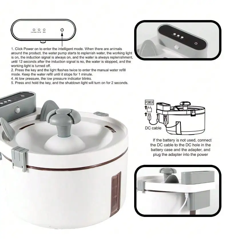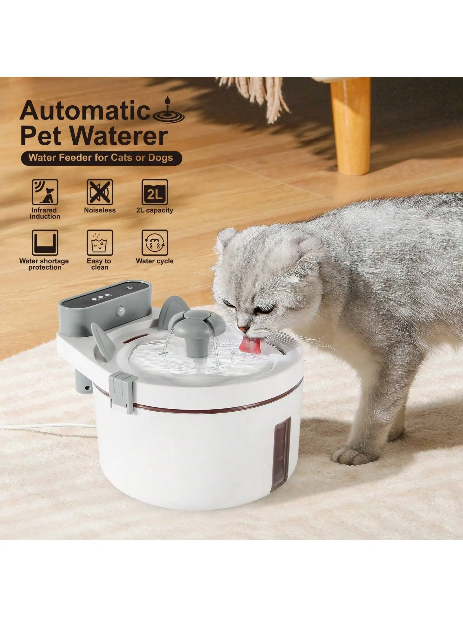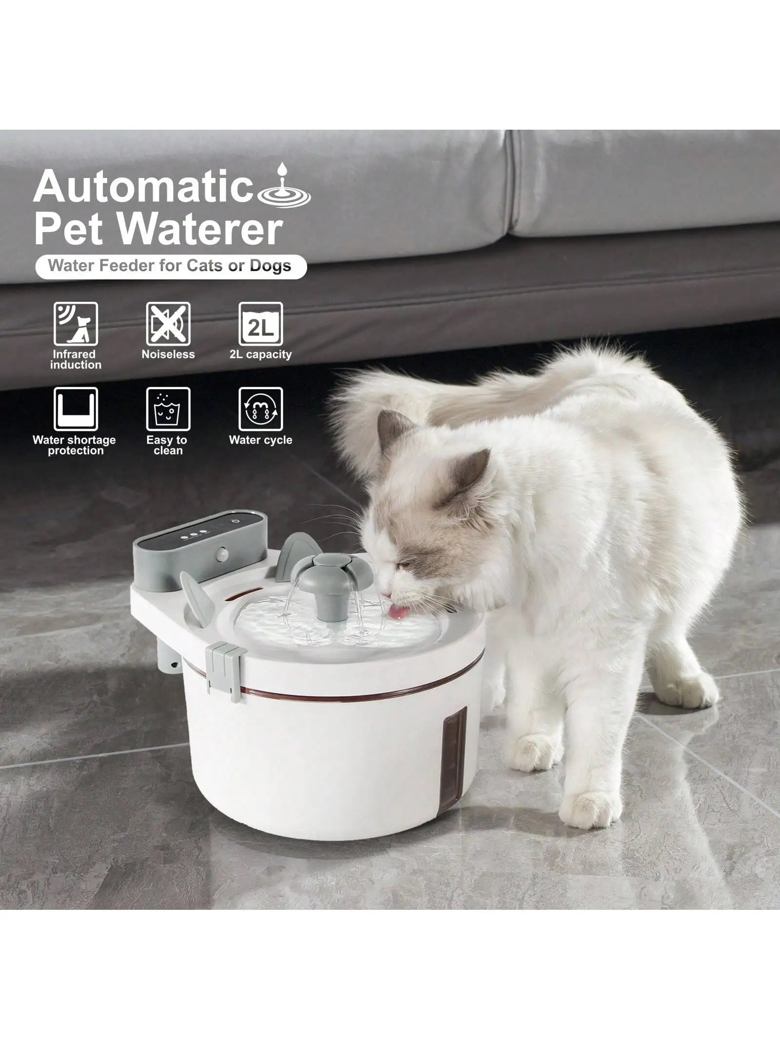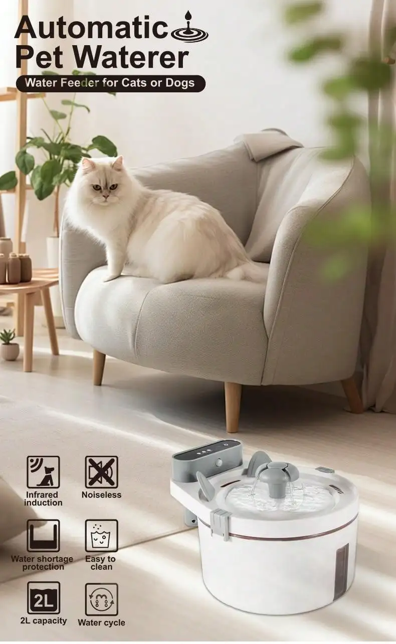Fuente de agua automática para mascotas, dispensador de agua Ultra silencioso con Sensor de movimiento, bomba interior de 2L, adecuado para gatos y perros sin BPA
