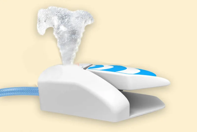 Conéctelo a un grifo a través de la manguera, presione el pedal y saldrá la corriente de agua.