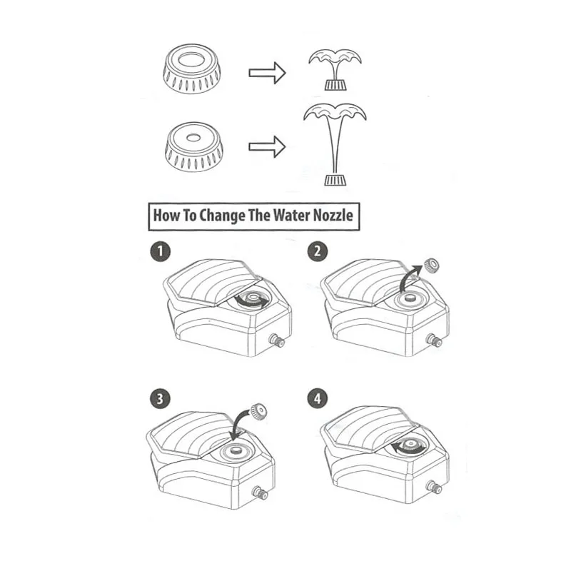 3. Ajuste la altura del agua con las 2 boquillas de agua intercambiables (incluidas)