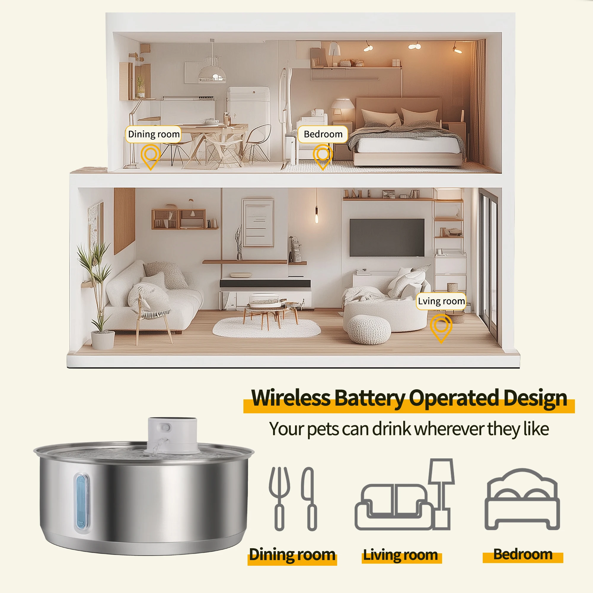 【Fontana de cuenco de agua para perros de acero inoxidable】Acero inoxidable SUS304: todo el cuerpo de la fuente de agua grande para mascotas está hecho de acero inoxidable 304 de calidad alimentaria, que es resistente, duradero y resistente a la corrosión.Las fuentes para mascotas de acero inoxidable son más fáciles de limpiar y mantener, lo que le ahorra mucho tiempo.La ventana visible del nivel de agua le permite controlar el nivel de agua restante en cualquier momento y rastrear fácilmente la situación de bebida de su mascota.