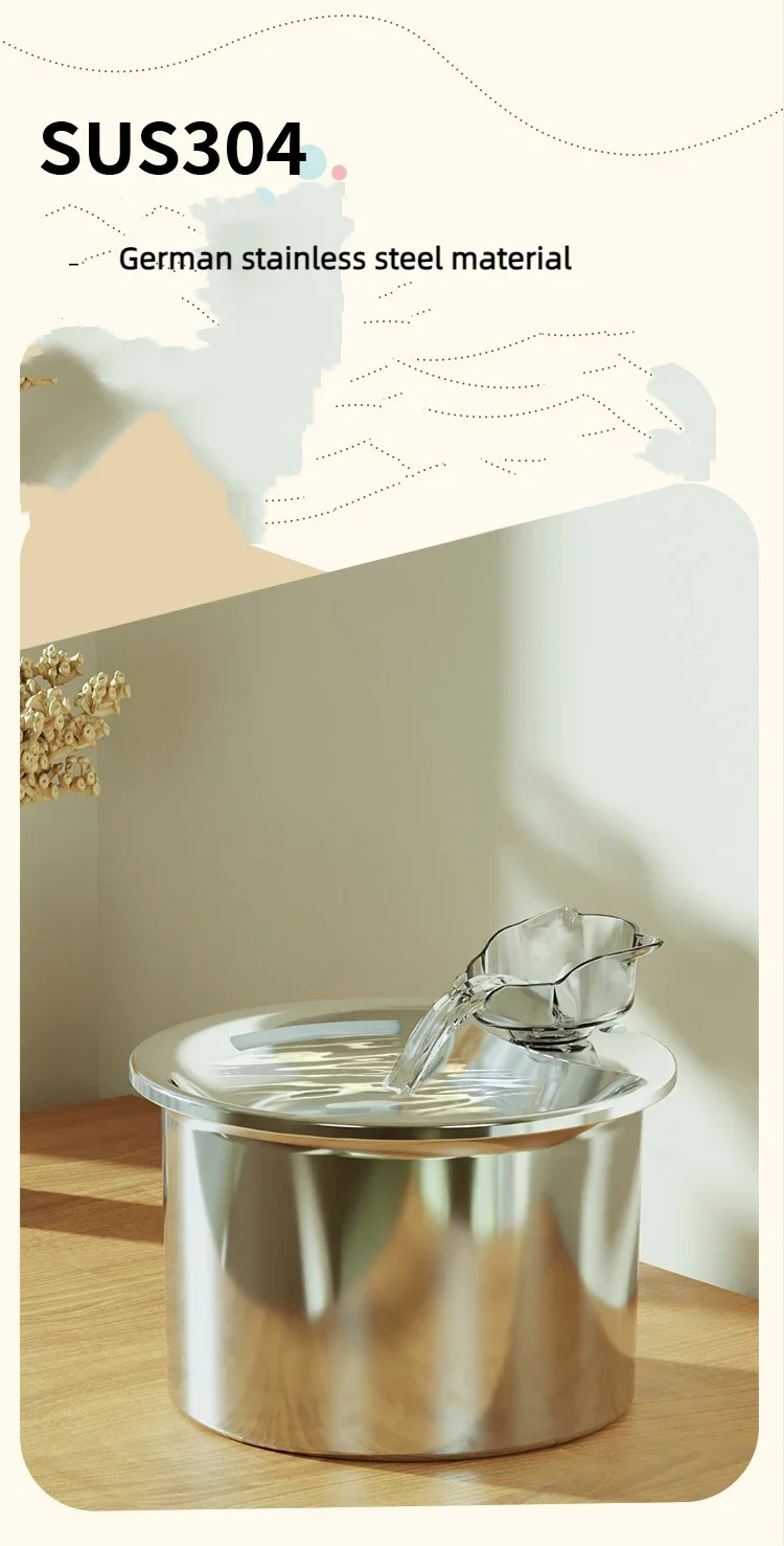 Fuente de agua con filtro automático de acero inoxidable para gatos, dispensador de agua para mascotas, bebedero inteligente para mascotas con grifo, bebedero