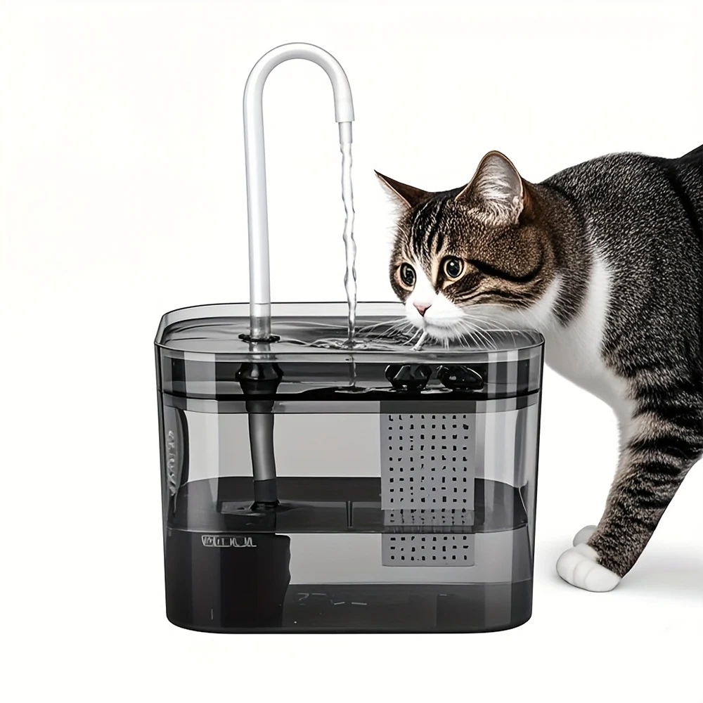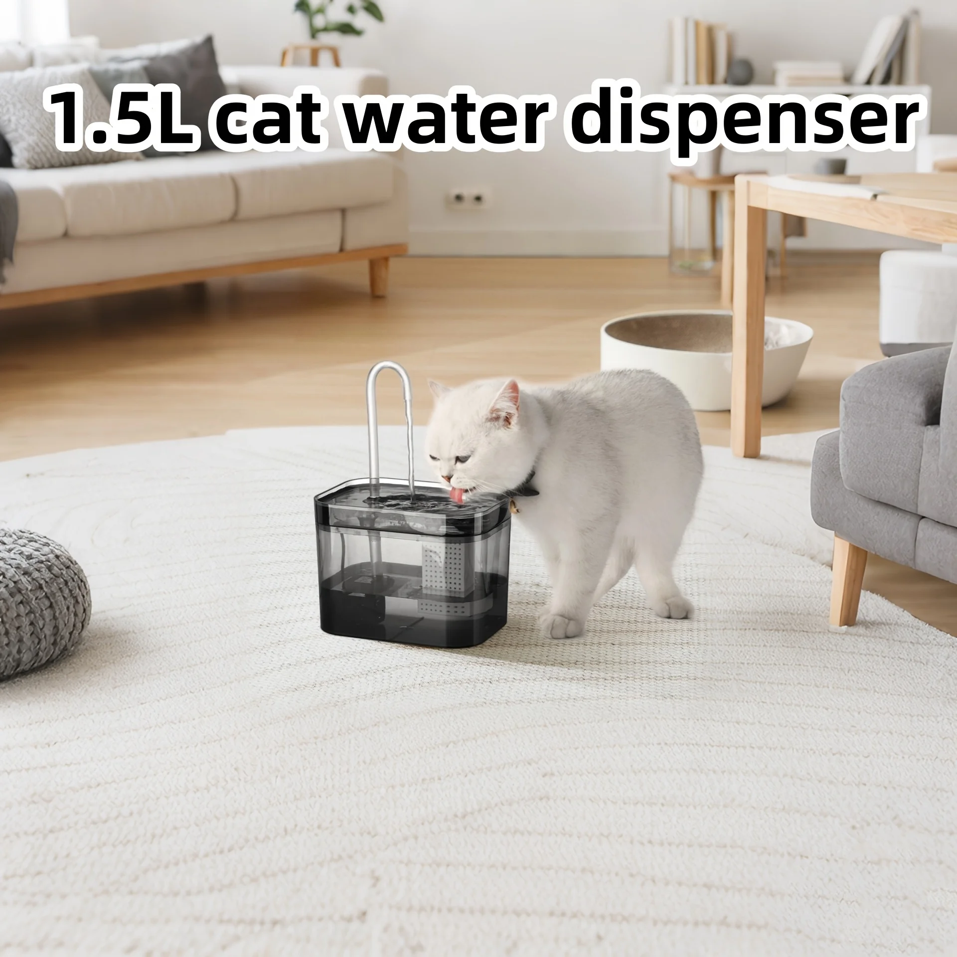 Fuente de agua para gatos de 1,5 l con filtro automático USB, bebedero para gatos negro transparente de recircular, dispensador automático de bebidas para mascotas