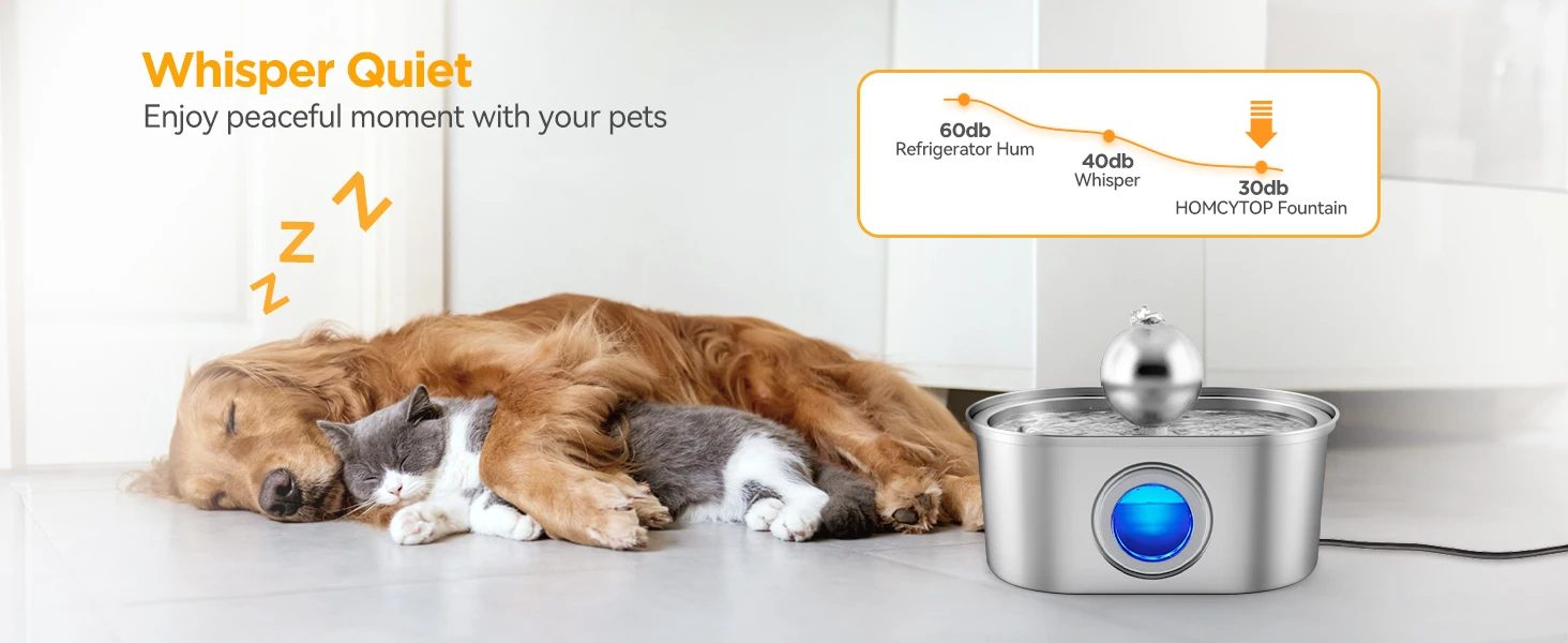 Verifique si está vacía o si el nivel del agua baja por debajo del mínimo, luego rellene la fuente al nivel máximo. Compruebe si hay pelos que bloquean el impulsor de la bomba de agua. A veces el impulsor estaba totalmente incrustado en calcio.