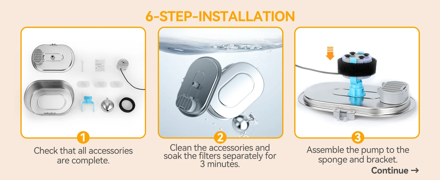 Para la longevidad de la bomba, recomendamos limpiarla una vez a la semana y mantener el nivel de agua de la fuente para gatos a más de 1/3 de la capacidad del tanque.