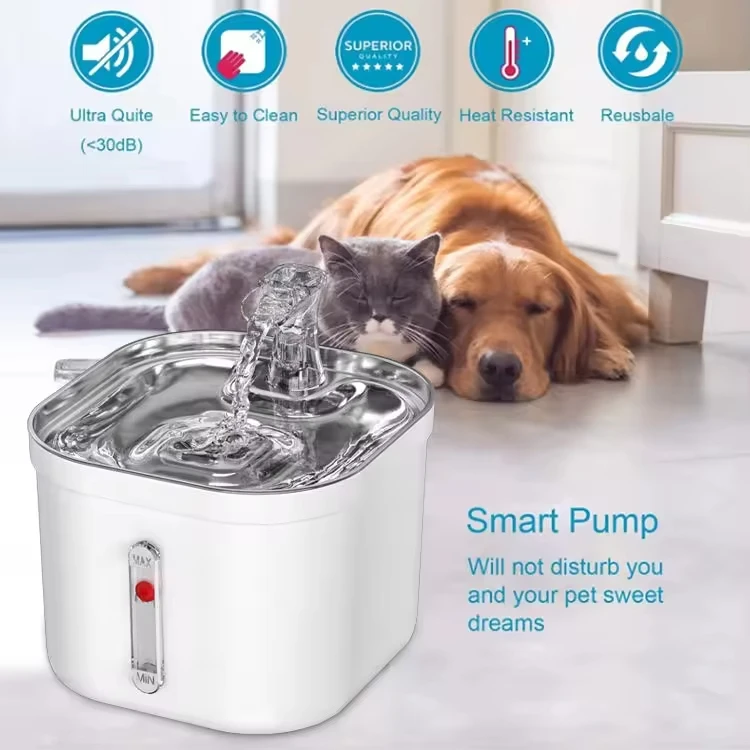 Fuente de agua para gatos de acero inoxidable: 73 oz/2,2 l, hecha de acero inoxidable 304 de calidad alimentaria, sin BPA y apta para lavavajillas, fácil de limpiar, que también es duradera, higiénica y no retiene olores desagradables.