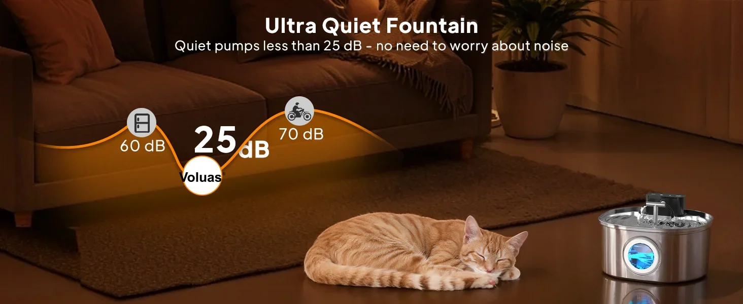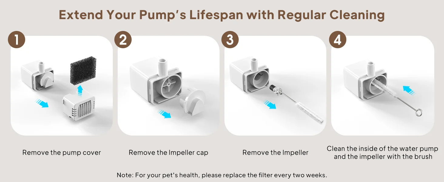 【Filtración vertical de 4 capas】Con filtro, aumenta la cantidad de material de filtración y tiene mejor filtración.La filtración de circulación unidireccional garantiza una purificación profunda, proporcionando agua pura y fresca para tus amigos peludos.(El elemento filtrante debe reemplazarse periódicamente)