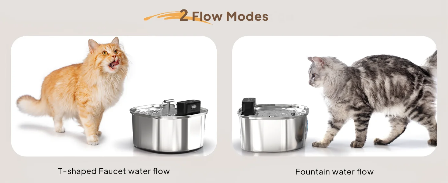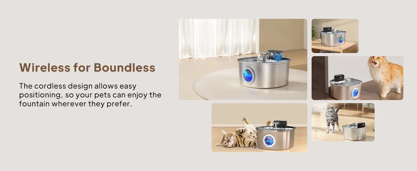 【Diseño inalámbrico y salida dual】Ya no hay necesidad de preocuparse por el impacto de los cables en las mascotas.Se puede colocar en cualquier lugar de la casa.Y con batería, es adecuado tanto para uso en interiores como en exteriores. Doblas salidas de agua para un uso más fácil.