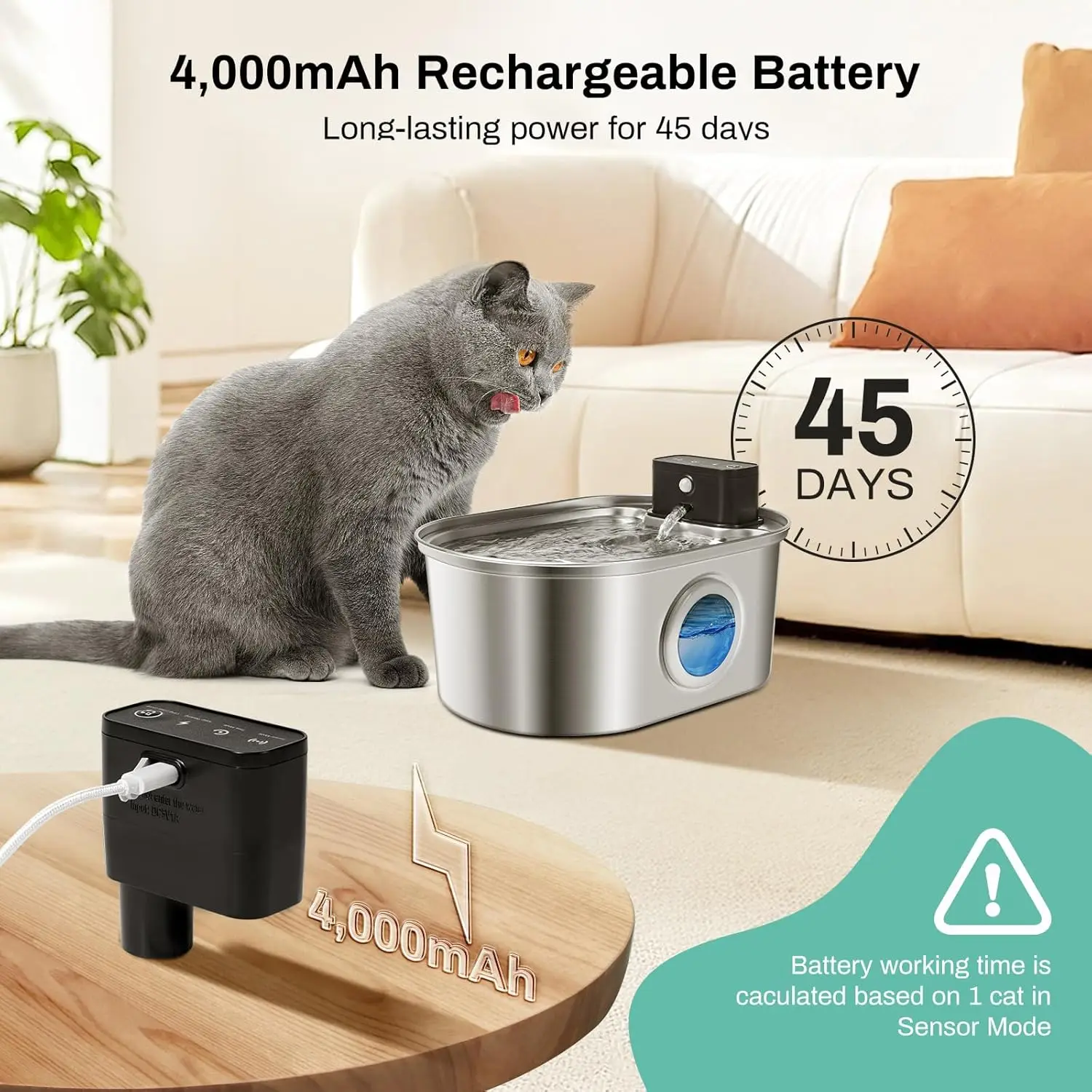 Tiene la ventaja de ser inalámbrico, ligero y se puede colocar en cualquier lugar. Es realmente simple y fácil de limpiar porque no tiene motor. Fue una excelente opción para gatos que les gusta el agua corriente, ya que libera agua automáticamente cuando un gato se acerca. No puedo decir la cantidad exacta de agua consumida, pero es seguro que van a beber agua mucho más frecuentemente que cuando usan tazones de agua normales.