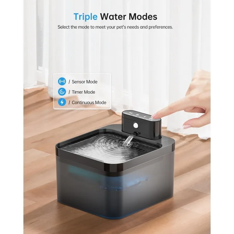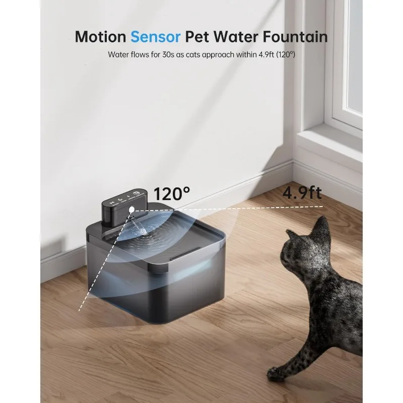 Modo de trabajo triple: esta fuente de agua automática para gatos ofrece 3 modos inteligentes de agua de trabajo - Modo Sensor (funciona durante 30 segundos cuando la mascota se acerca a 4,9 pies a 120°), Modo temporizador (funciona durante 30 segundos cada 10 minutos) y modo continuo (requiere un adaptador enchufable para el modo potente)