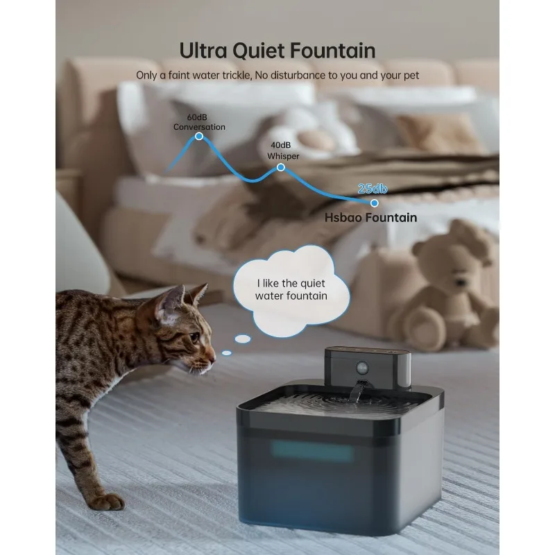 Fuente ultra silenciosa y que ahorra energía: la bebedero para gatos viene con una bomba silenciosa que funciona suavemente a menos de 25 dB.Garantiza que su mascota no tenga miedo ni molestias por el ruido diario.La bomba de bajo consumo ahorra energía y reduce su factura.Se incluye una batería recargable. No es necesario comprar una nueva para ahorrar dinero.