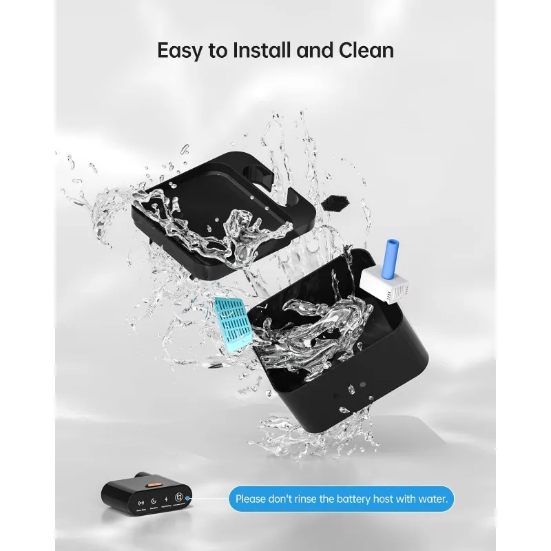 Fácil de montar y mantener: la fuente de agua para mascotas es muy fácil de desmontar y montar. Puede separar la bomba de agua y el host de la batería y luego instalarla con facilidad. La mayoría de las piezas se pueden enjuagar directamente con agua para una limpieza sin esfuerzo. (El host de la batería no se puede lavar con agua. Retírelo antes de limpiarlo y límpielo).