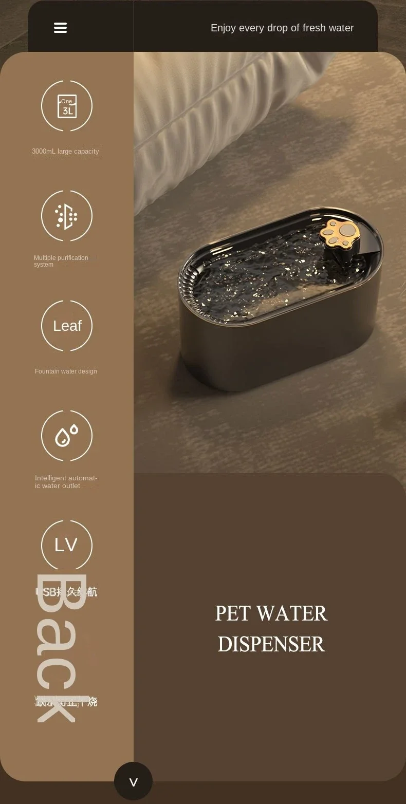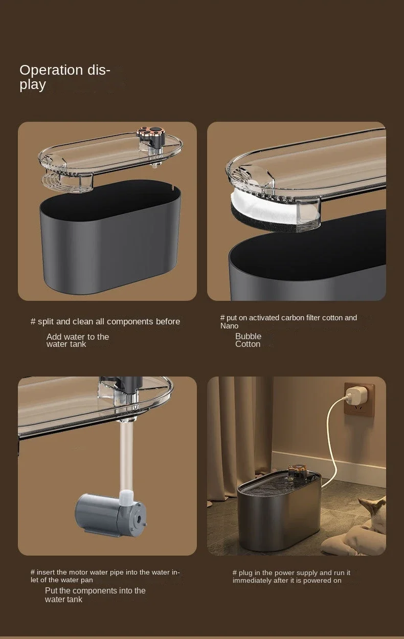 Fuente de agua inteligente para mascotas, alimentador automático de 3L con luz LED ultrasilenciosa, dispensador de bebidas eléctrico con USB