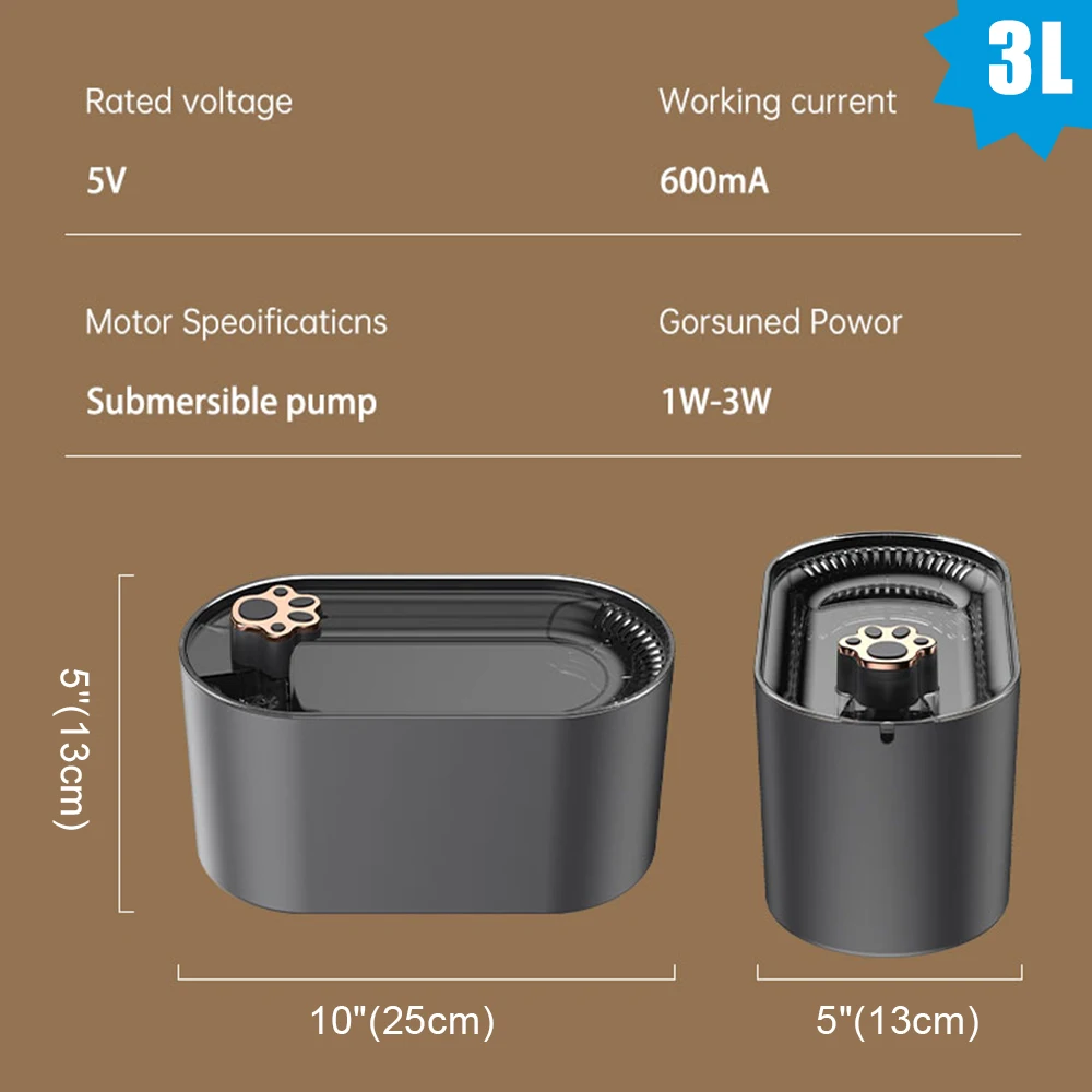 Fuente de agua para mascotas, dispensador de agua inteligente, bebedero eléctrico silencioso USB para gatos, luz LED de 3L, bebedero automático ultrasilencioso para mascotas