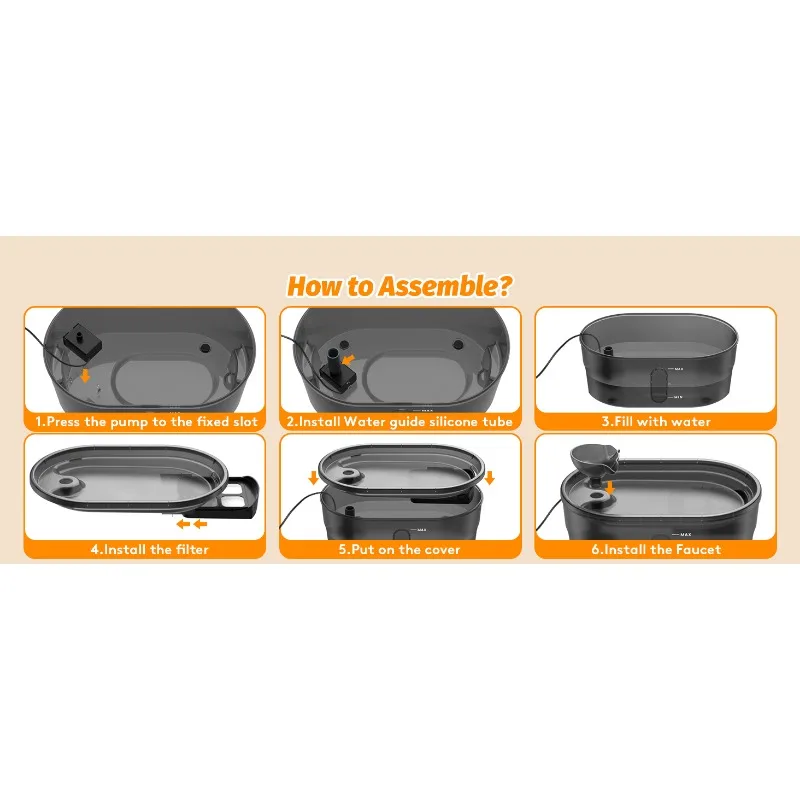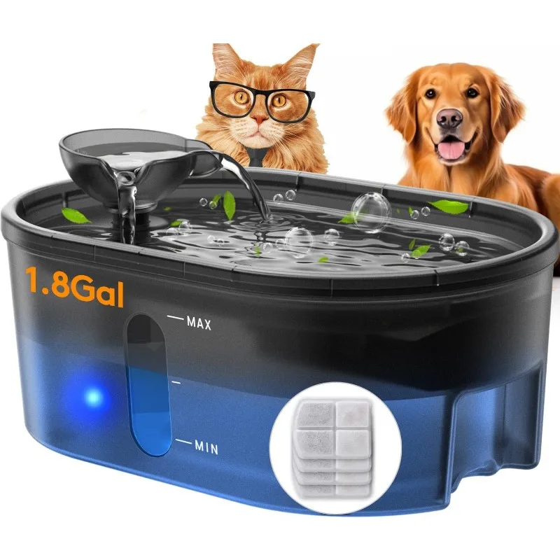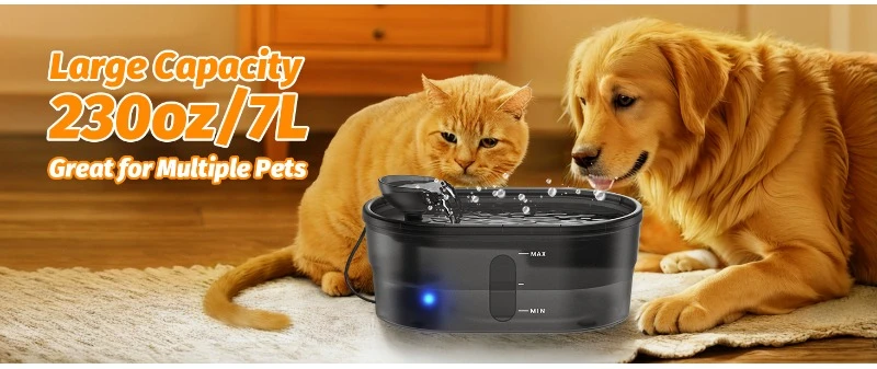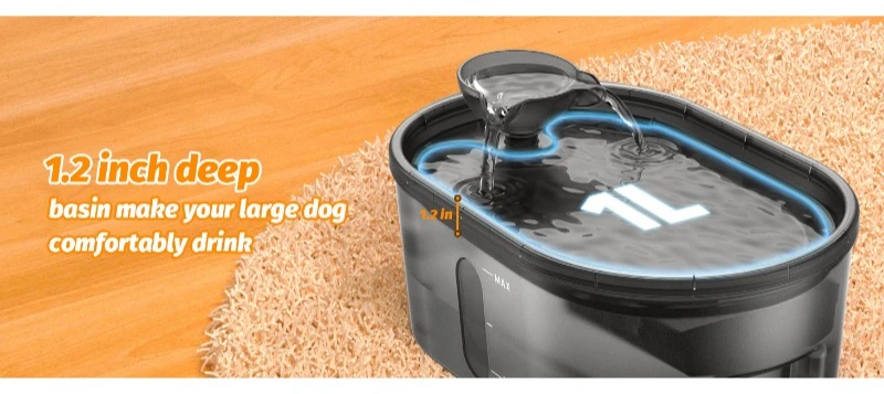 Capacidad ultra grande de 1,8 galones y área de bebida amplia: busque 'B0D89NXNRZ' en Amazon para encontrar bombas de repuesto.La fuente de agua para perros en el interior con una gran capacidad de 230 oz/7 L hace que esta fuente para perros sea perfecta para todos los perros, gatos y mascotas de la raza y reduce la frecuencia de recarga para usted.El recipiente de agua grande superior es una amplia área para beber y proporciona 1 litro de agua de emergencia para sus mascotas en caso de cortes de energía.El lavabo de 1,2 pulgadas de profundidad hace que su perro grande beba cómodamente.