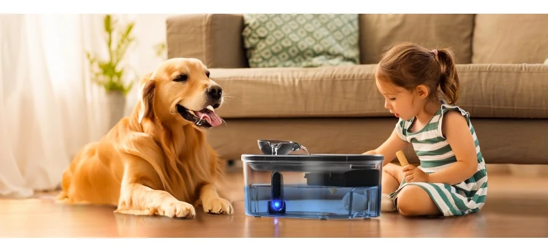Tanque de agua transparente y luz LED inteligente: el aspecto transparente le permite ver cuánta agua hay en el tanque sin tener que quitar la bandeja superior. La fuente de agua para mascotas para perros está equipada con una luz indicadora LED.La hermosa luz azul puede mostrar fácilmente el nivel del agua en la oscuridad para saber cuándo agregar agua.Hay un interruptor en el cable para controlar la luz y poder encenderlo o apagarlo fácilmente.