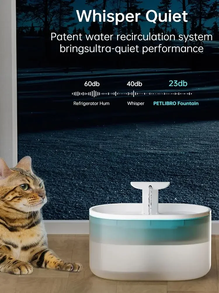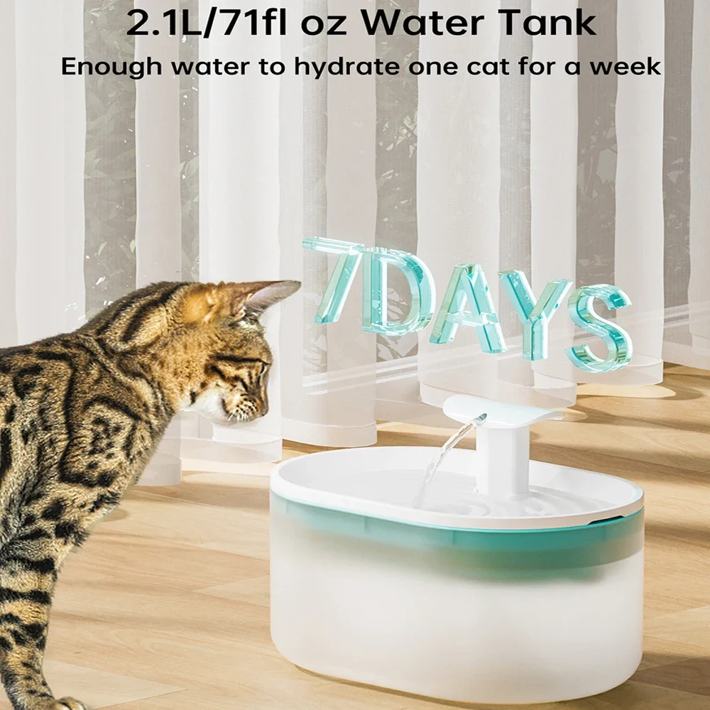 Fuente de agua súper silenciosa para gatos, bebedero Visible con dos modos de flujo, 71 oz/2,1 litros