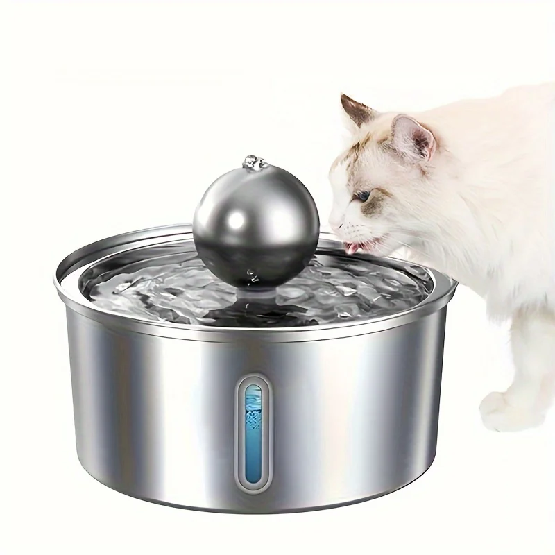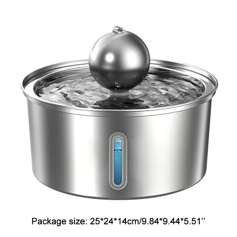 Fuente de agua con ventana de nivel de agua para mascotas, dispensador de agua de acero inoxidable de 3,2 L con bola, producto para gatos