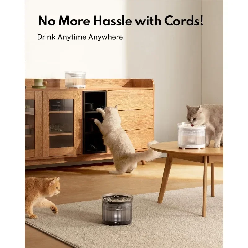 ¡Cargue una vez, relájese durante 30 días!- Alimentada por una batería de alta capacidad de 7500 mAh, esta fuente de agua inalámbrica para gatos ofrece hasta 30 días de uso con una sola carga, perfecta para dueños de mascotas ocupadas o cuando viaja