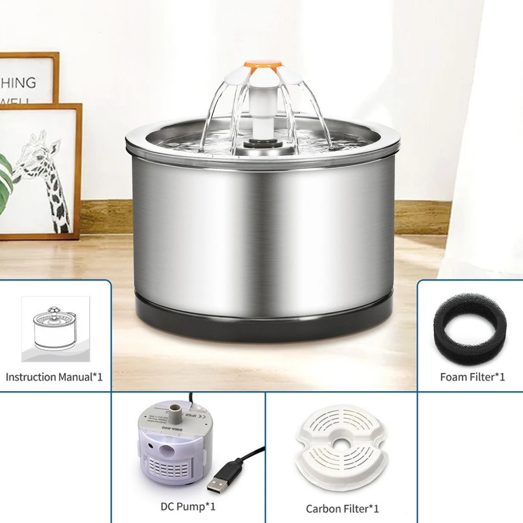 Fuente para mascotas de acero inoxidable de 2,5 L, dispensador automático de agua para perros y gatos con filtro, ultrasilencioso y fácil de limpiar, fomenta la hidratación