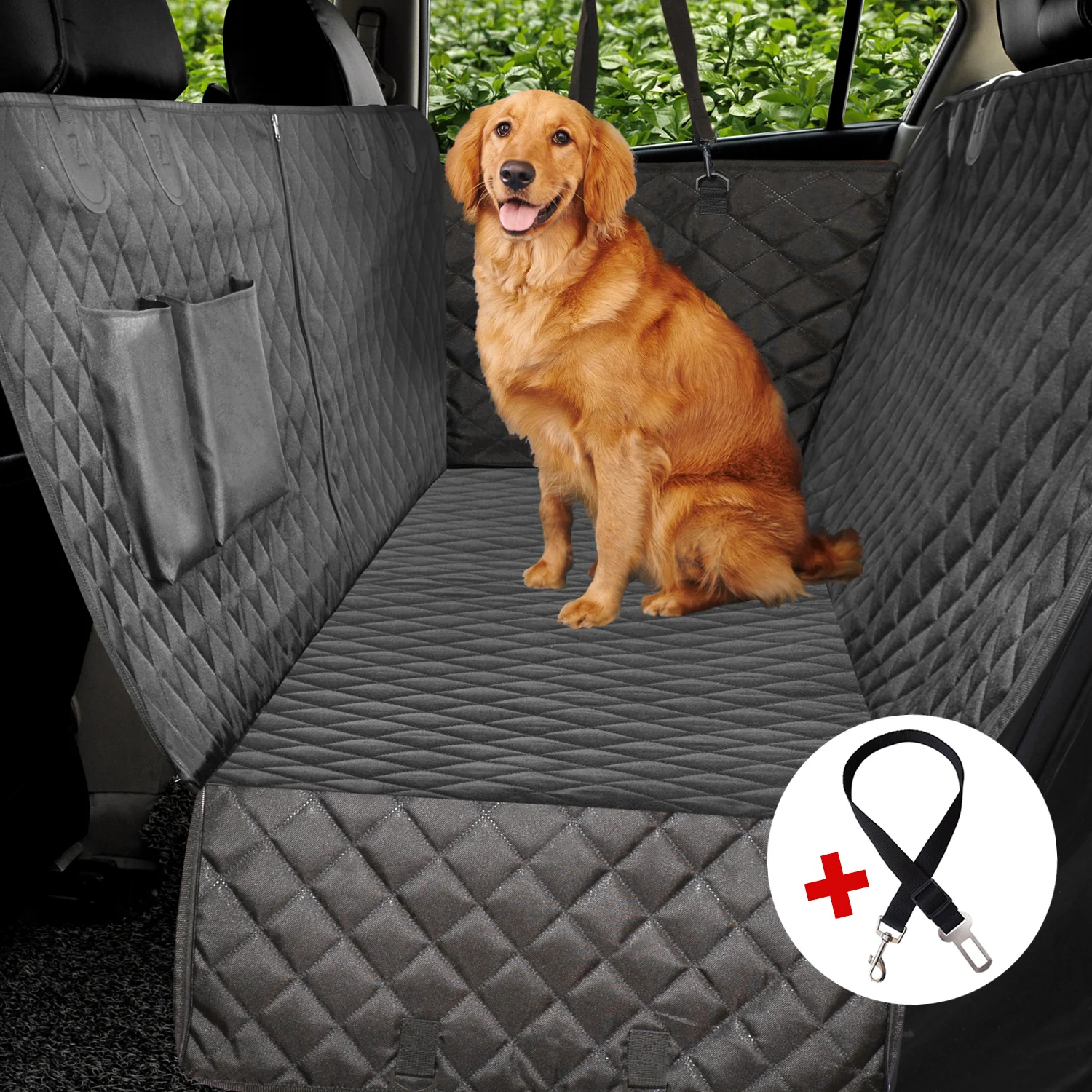 HAMACA CON SOLAPAS LATERALES-Es más fácil para su perro entrar o salir del coche. También las aletas laterales pueden proteger la puerta de su automóvil de arañazos y pelos. Hamaca con cremallera dividida versátil para permitir que las mascotas y los niños puedan compartir el asiento trasero cuando se cierra la cremallera para una hamaca completa o la cremallera hacia abajo para la mitad para que los perros y los pasajeros puedan viajar juntos.
