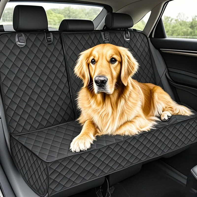 Funda protectora para asiento trasero de coche para perro, impermeable, resistente a la suciedad, funda para asiento para mascotas, correa para el hombro negra, hamaca, colchón de viaje para mascotas