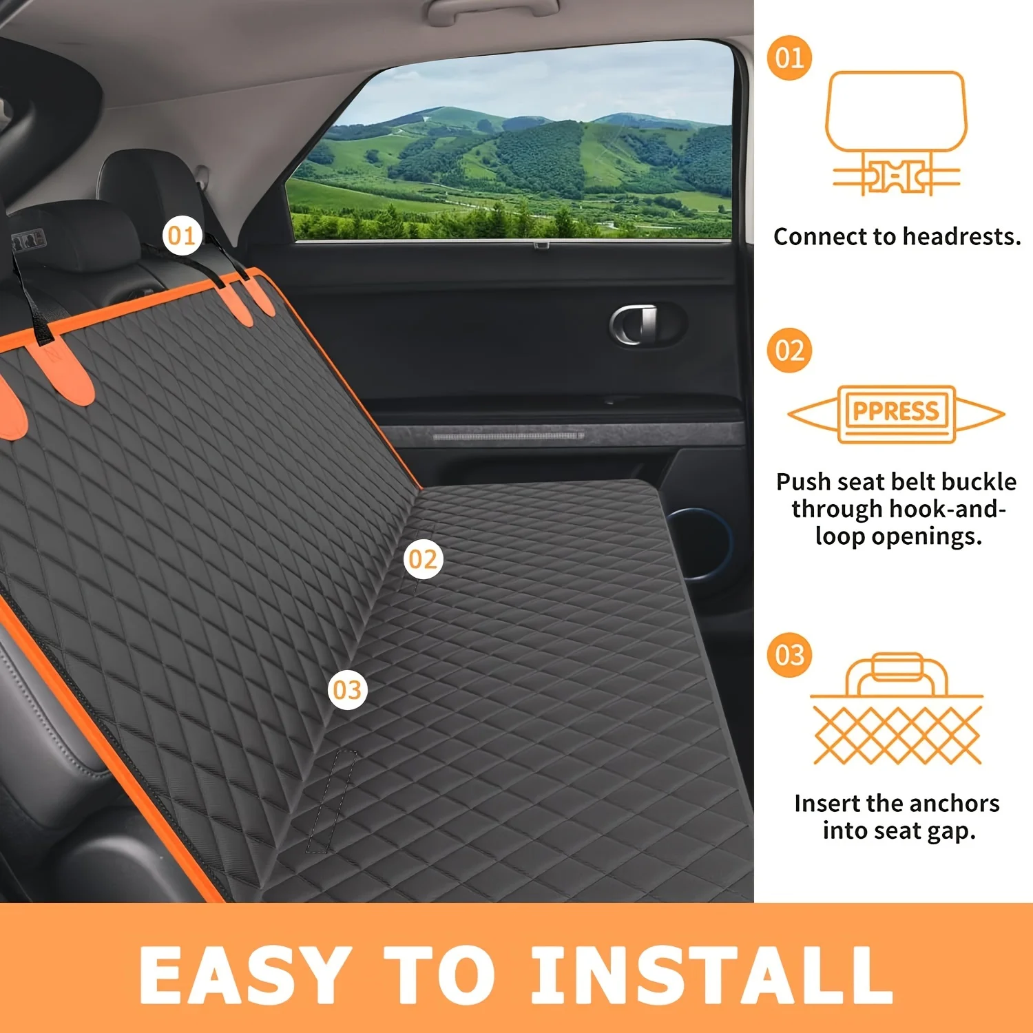Funda para asiento de coche para perros, cubierta protectora impermeable estilo hamaca con ventanas de malla, adecuada para asientos traseros de coches, camiones y SUV