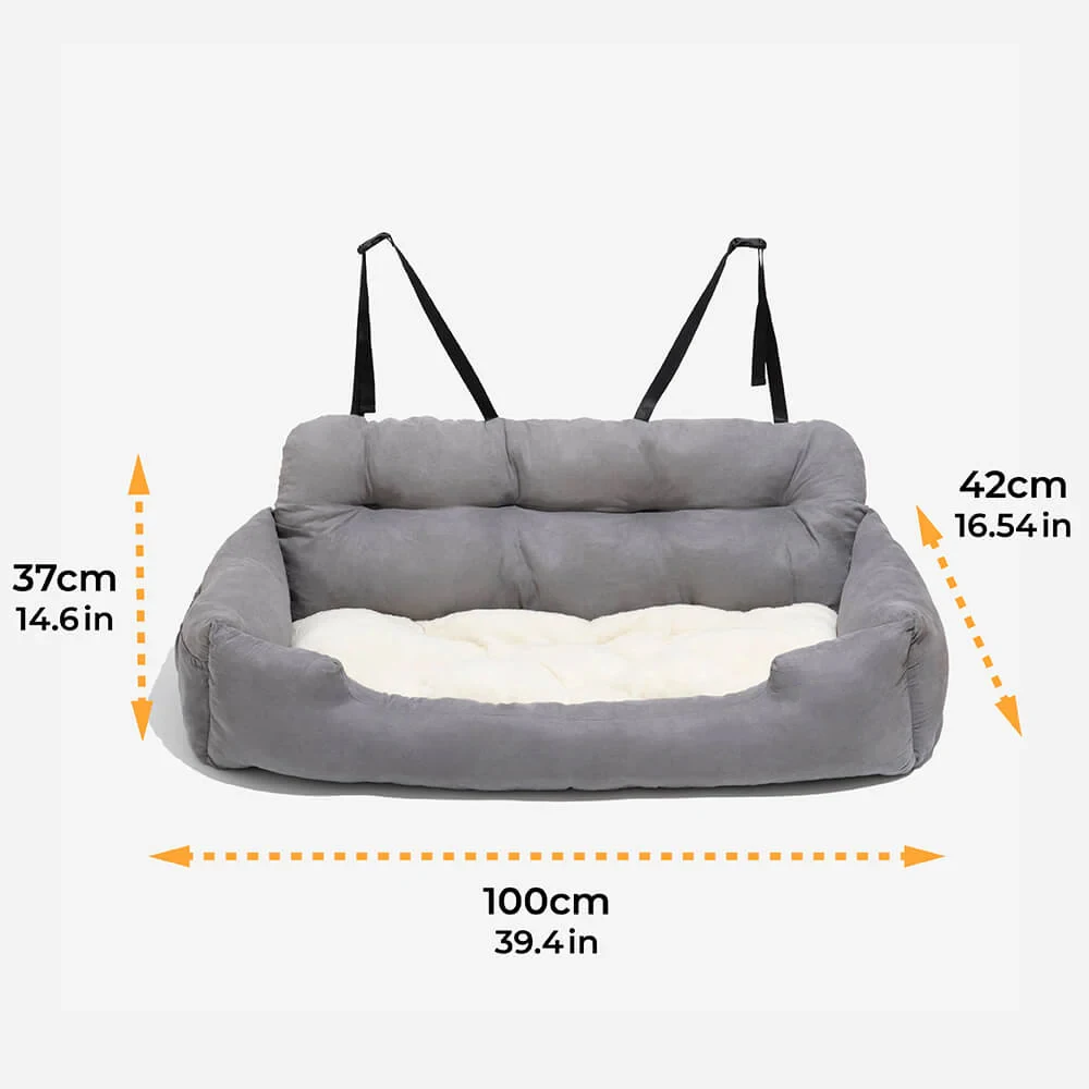 Las resistentes correas ajustables de nailon con una hebilla garantizan que esté unido de manera estable al asiento sin preocuparse por resbalarse del asiento al frenar. Está equipado con un cinturón de seguridad para evitar que el perro salte del asiento. Se puede instalar rápida y fácilmente en unos momentos.