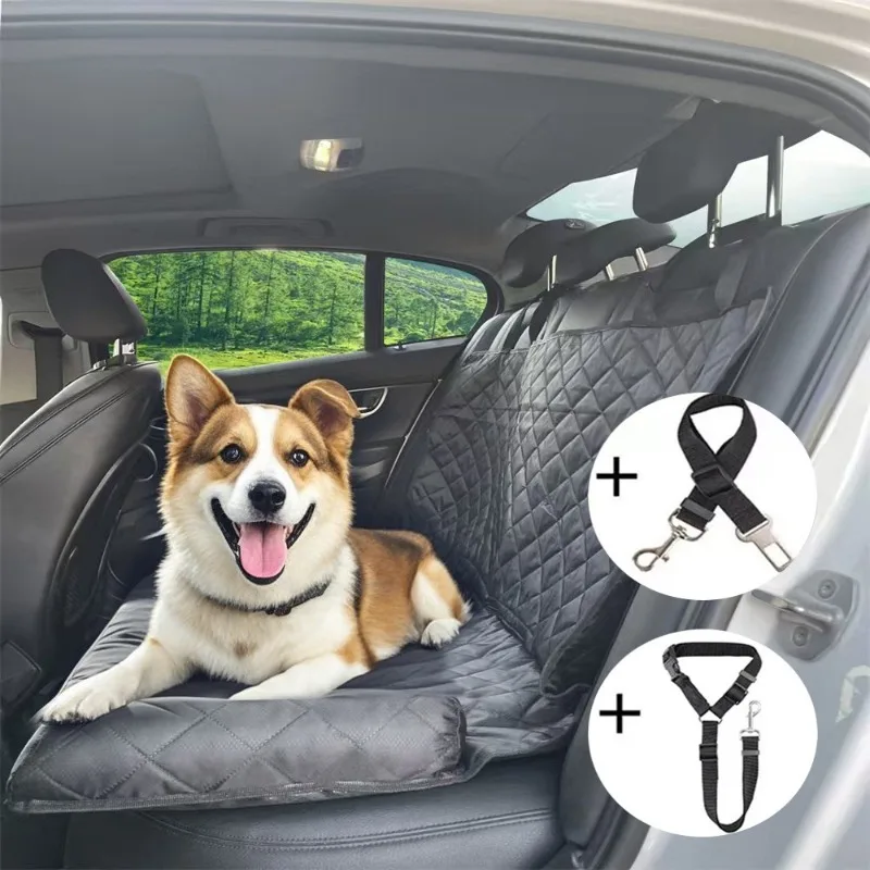 Funda de asiento para perro, duradera y suave, antideslizante, a prueba de arañazos, 3 asientos, fundas para asiento trasero de mascotas, hamaca con cinturón para coches, camiones, SUV, viajes, 1 ud.