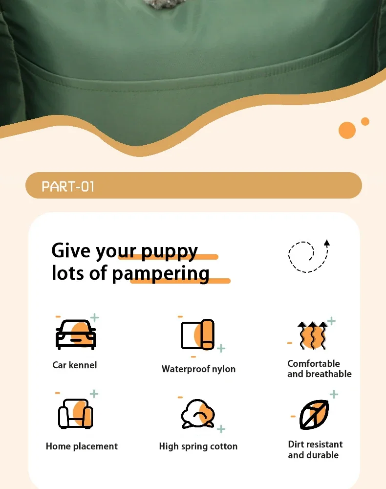 La cama del asiento del coche del perro le da a su cachorro Protección delantera y traseraContra el frenado brusco, que también proporciona Comodidad de primera clase... No solo puede usarlo en el automóvil, sino también durante su viaje, en el hotel o incluso en casa.