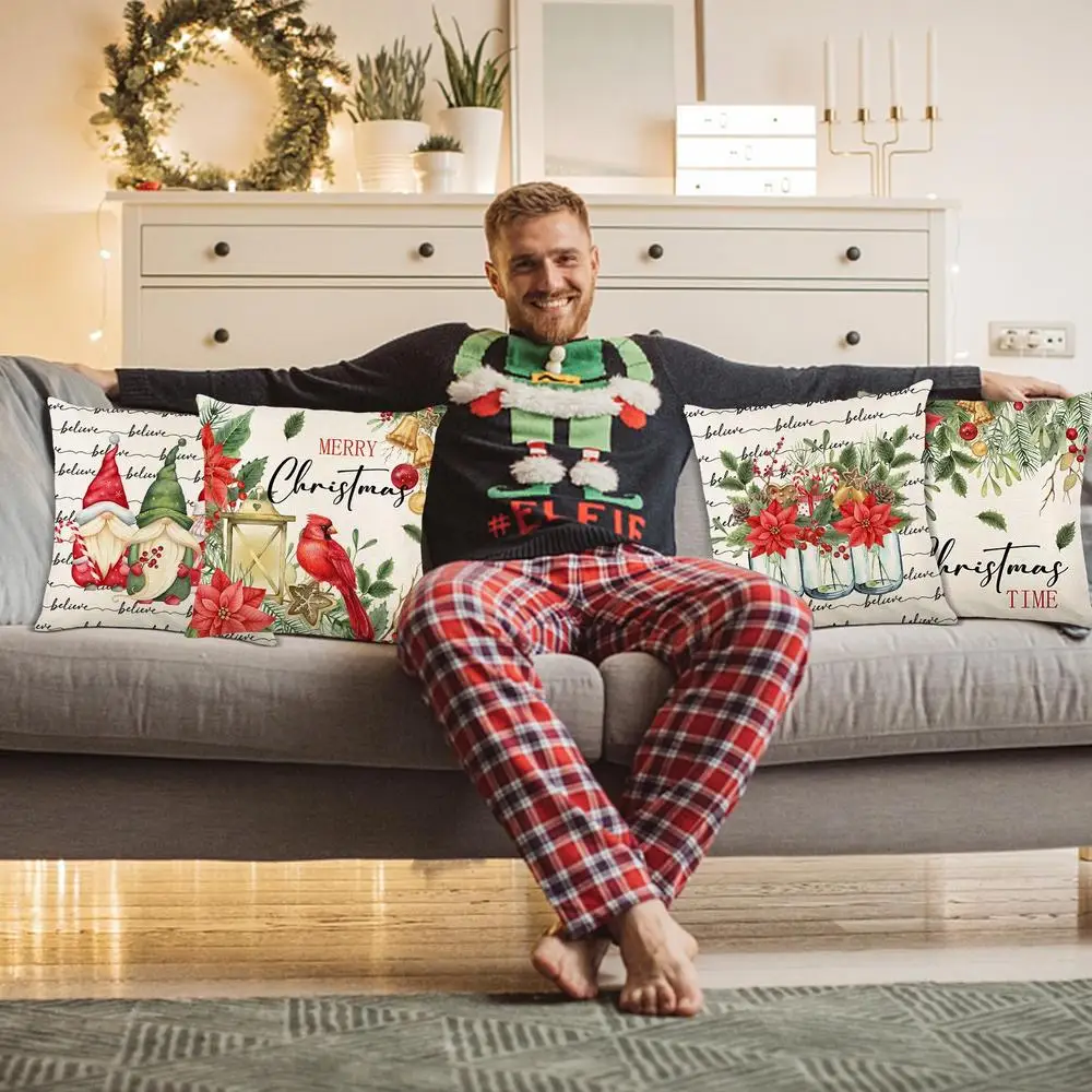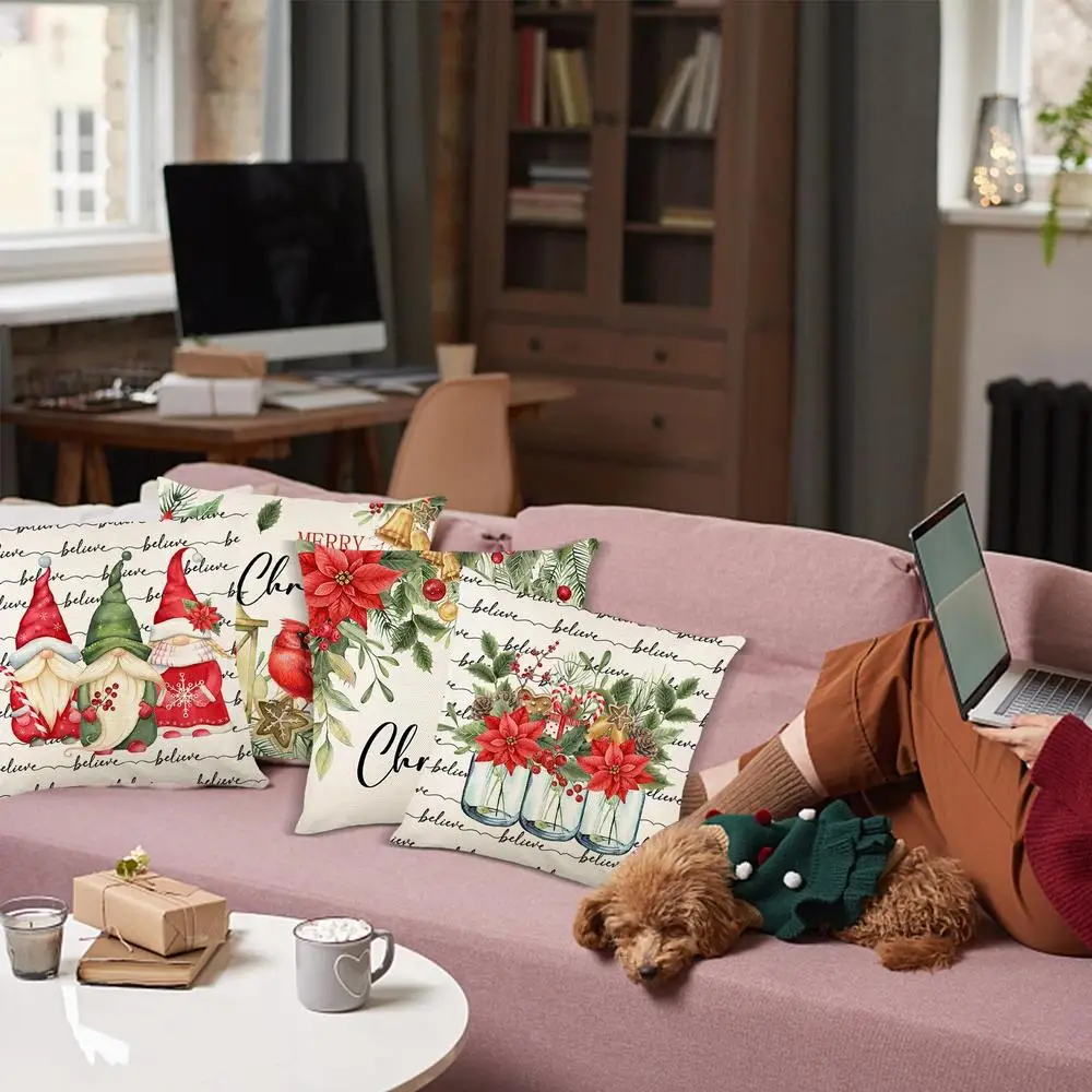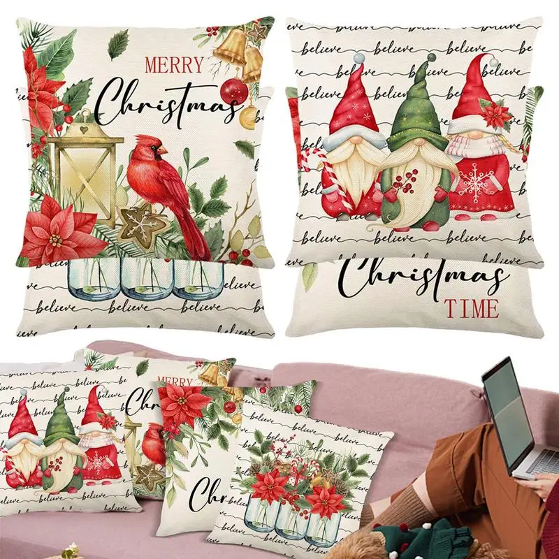 4. Decoración exquisita: estas fundas de almohada navideñas son perfectas para agregar un toque festivo a su hogar, combinando elementos navideños con plantas y flores para un aspecto único y elegante. También son excelentes regalos para su familia y amigos que aman la decoración navideña.